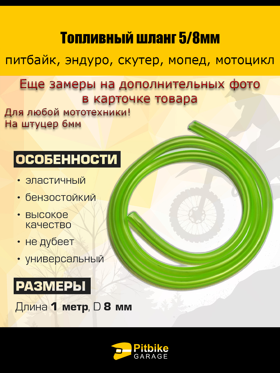 Приобретая наш бензошланг диаметром 5-8 мм, вы получаете надежный помощник, который поможет вам осуществить эффективную и безопасную доставку топлива. Стильный зеленый цвет добавляет особый акцент и позволяет легко отличить его от других шлангов в гараже или на заправке.