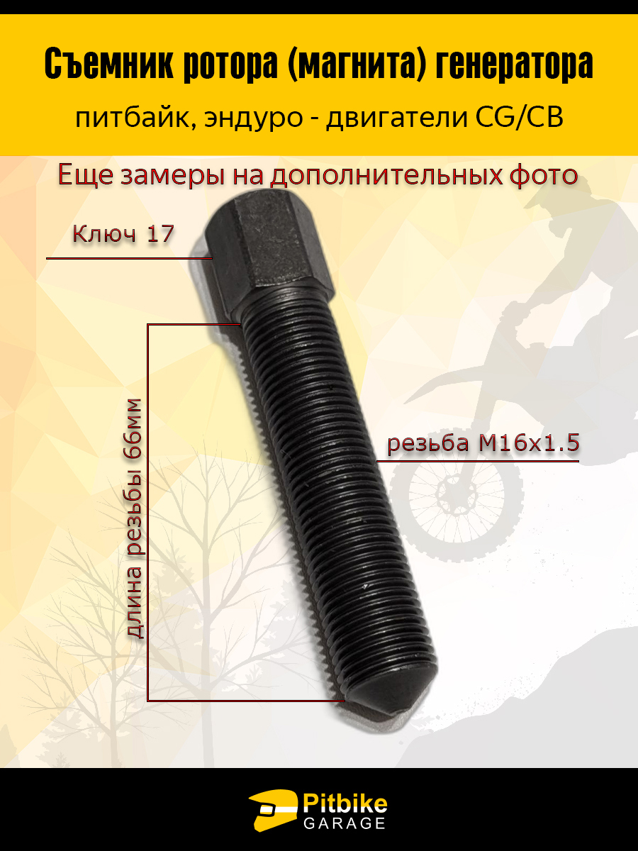 Болт съемник ротора генератора мотоцикла с двигателем CG/CB — мотозапчасть или аксессуар для мотоцикла. Используется для ремонта, замены и регулярного обслуживания. Обеспечивает стабильную работу и длительный срок службы. Инновационный, надежный и мощный - вот что описывает наш съемник ротора (магнита) для генераторов CG/CB. Если вы владелец или работник автосервиса, вы точно знаете, как важно иметь под рукой качественные инструменты для выполнения ремонтных работ. И наш съемник ротора - идеальный выбор!