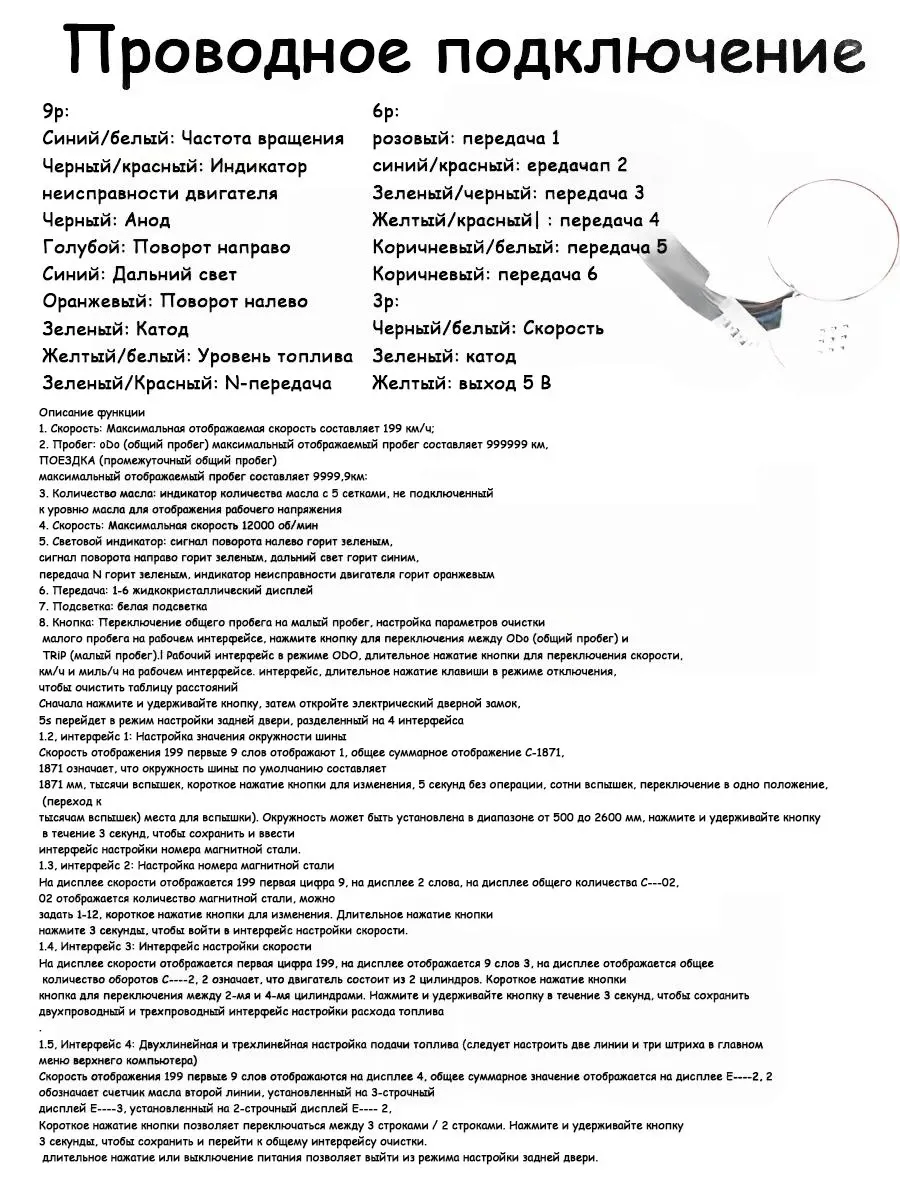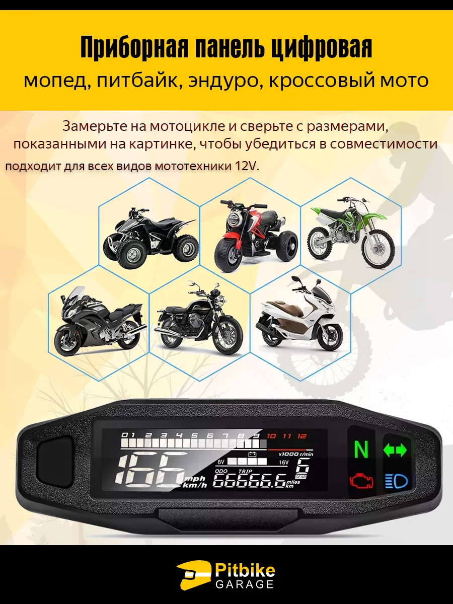 Цифровая приборная панель для мотоцикла – универсальное решение для точного контроля движения и повышения безопасности на дороге. Этот современный электронный спидометр разработан для установки на мопеды, питбайки, эндуро и кроссовые мотоциклы, а также подходит для большинства моделей мототехники с бортовой сетью 12 В. Компактная конструкция, лаконичный дизайн и широкий функционал делают устройство практичным выбором для ежедневного использования и тюнинга транспорта.