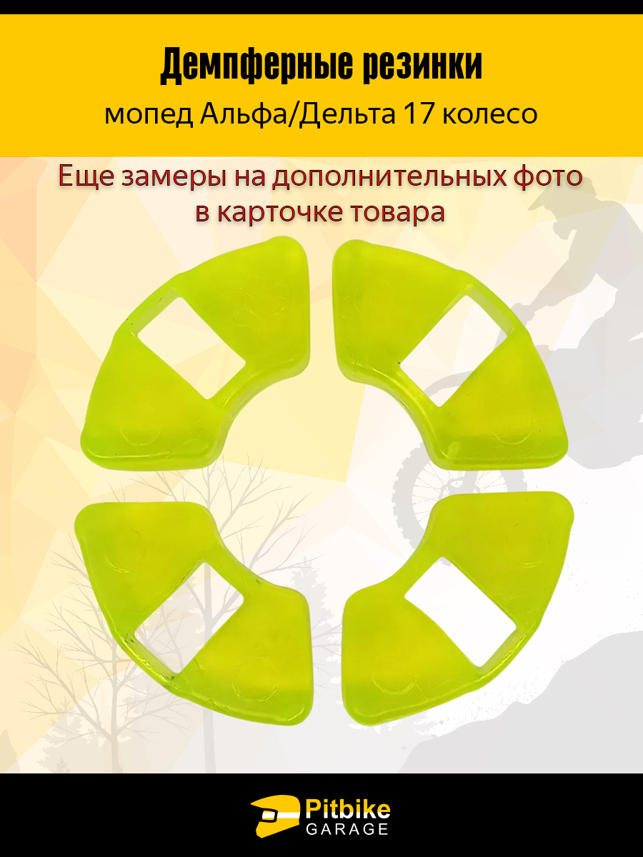 Демпферные резинки для мопедов Альфа/Дельта (колесо 17 дюймов) – это надежный и долговечный элемент трансмиссии, который обеспечивает плавность хода, снижает вибрации и продлевает срок службы мотоцикла. Данный комплект изготовлен из прочного износостойкого полиуретана, который значительно превосходит по характеристикам стандартную резину. Установка демпферных резинок необходима каждому владельцу мопеда, кто хочет повысить комфорт езды и защитить ведущую звезду, втулку и обод колеса от износа. Именно эти детали принимают на себя основную нагрузку при трогании и резких ускорениях. Основные преимущества: Совместимость с популярными моделями мопедов Альфа и Дельта с колесами 17 дюймов. Прочный и упругий материал, устойчивый к растрескиванию, нагрузкам и перепадам температур. Надежная фиксация в ступице, отсутствие люфтов и посторонних шумов. Продление срока службы цепи, звезды и подшипников. Простая установка без использования специального инструмента. Характеристики товара: Материал: полиуретан повышенной плотности. Цвет: прозрачный с ярким желтым оттенком. Толщина одного элемента – 15 мм. Размеры: 68 × 30 мм (см. фото с замерами). Вес комплекта в упаковке – 155 г. В комплект входит 4 демпферные вставки. Почему выбирают именно этот комплект: Многие владельцы мопедов Альфа и Дельта сталкиваются с проблемой быстрого износа дешевых резинок. Они быстро трескаются, становятся слишком мягкими или наоборот, дубеют на холоде. Наши демпферы изготовлены по улучшенной технологии литья под давлением, что обеспечивает оптимальный баланс упругости и жесткости. Это позволяет максимально гасить ударные нагрузки и при этом сохранять четкость передачи крутящего момента. Установка и эксплуатация: Монтаж занимает не более 10 минут. Достаточно снять заднее колесо, установить демпферы в посадочные места и собрать конструкцию обратно. После установки рекомендуется проехать 10–15 км для естественной усадки материала.