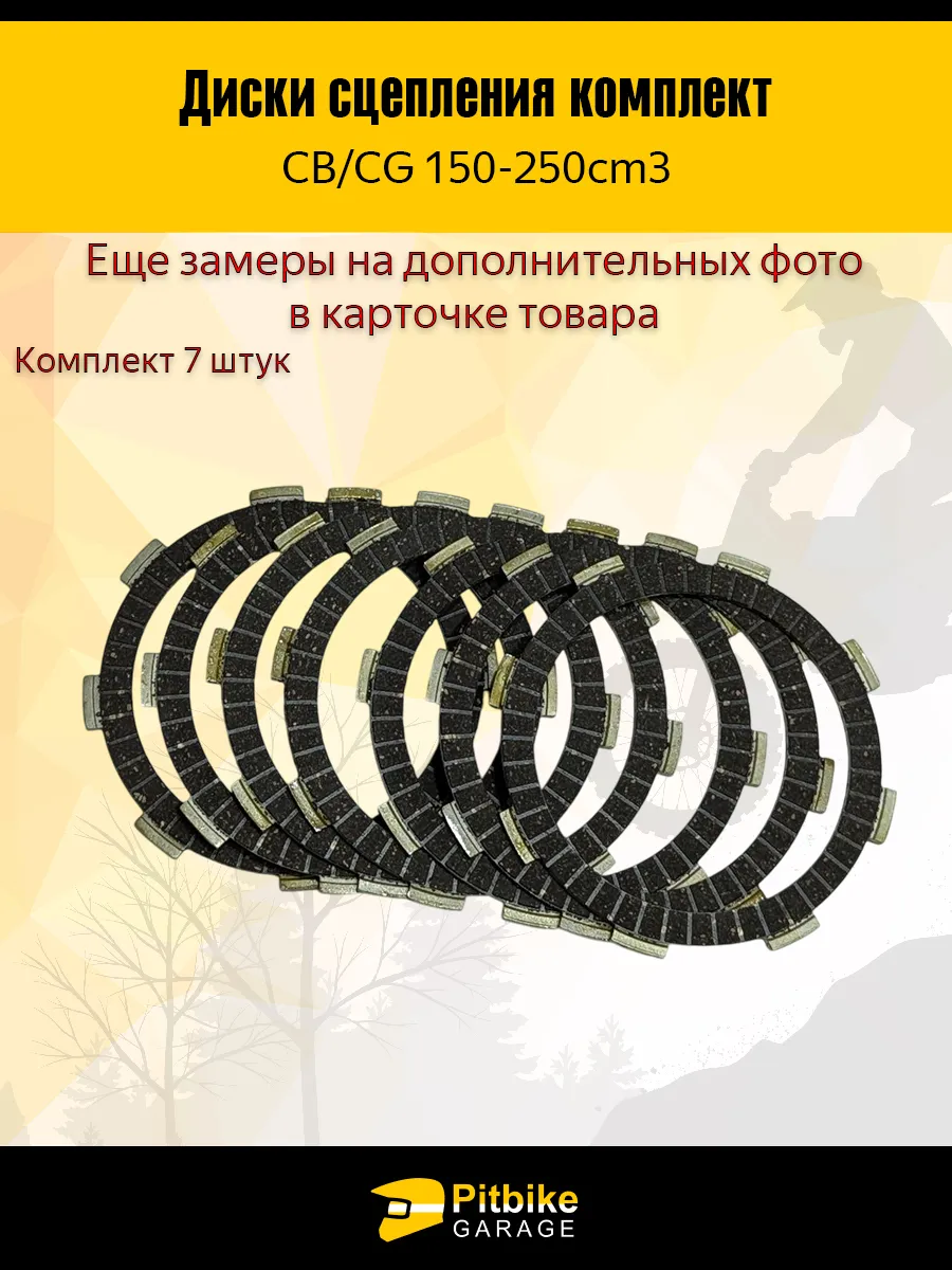 Диски сцепления комплект 7 штук, фрикционные. На картинке под номером 4. Подходит на многие вертикальные воздушки CB/CG 150-250 см3. В разных двигателях стоит разное кол-во дисков. Подходит на двигатели: ZS165/166FMM, ZS172FMM-3A (CB250-F), ZS172FMM-7 (CB250RL), ZS174MN-3 (CBS300). В двигателе ZS172FMM-5 (PR250) - в простонародье 172 с балансиром, в корзине стоит 6 дисков. Есть и водянки, на которые подходят эти диски: ZS169MM (CB250-A), ZS170MM-2 (CB250). Перед покупкой рекомендуем сверять размеры деталии, указанные на фото или в описание и кол-во дисков установленных на вашем моторе.