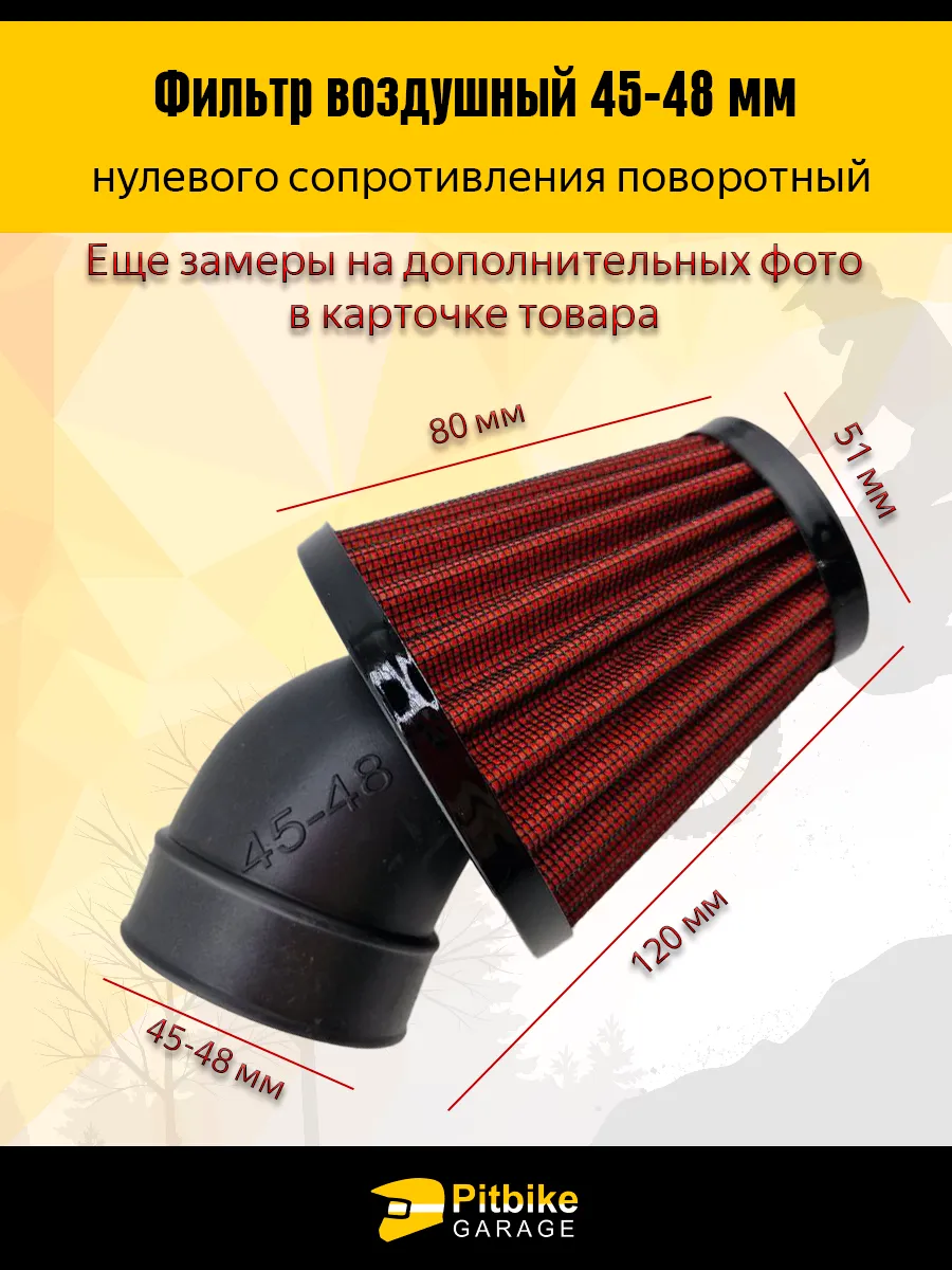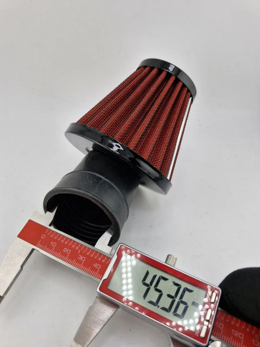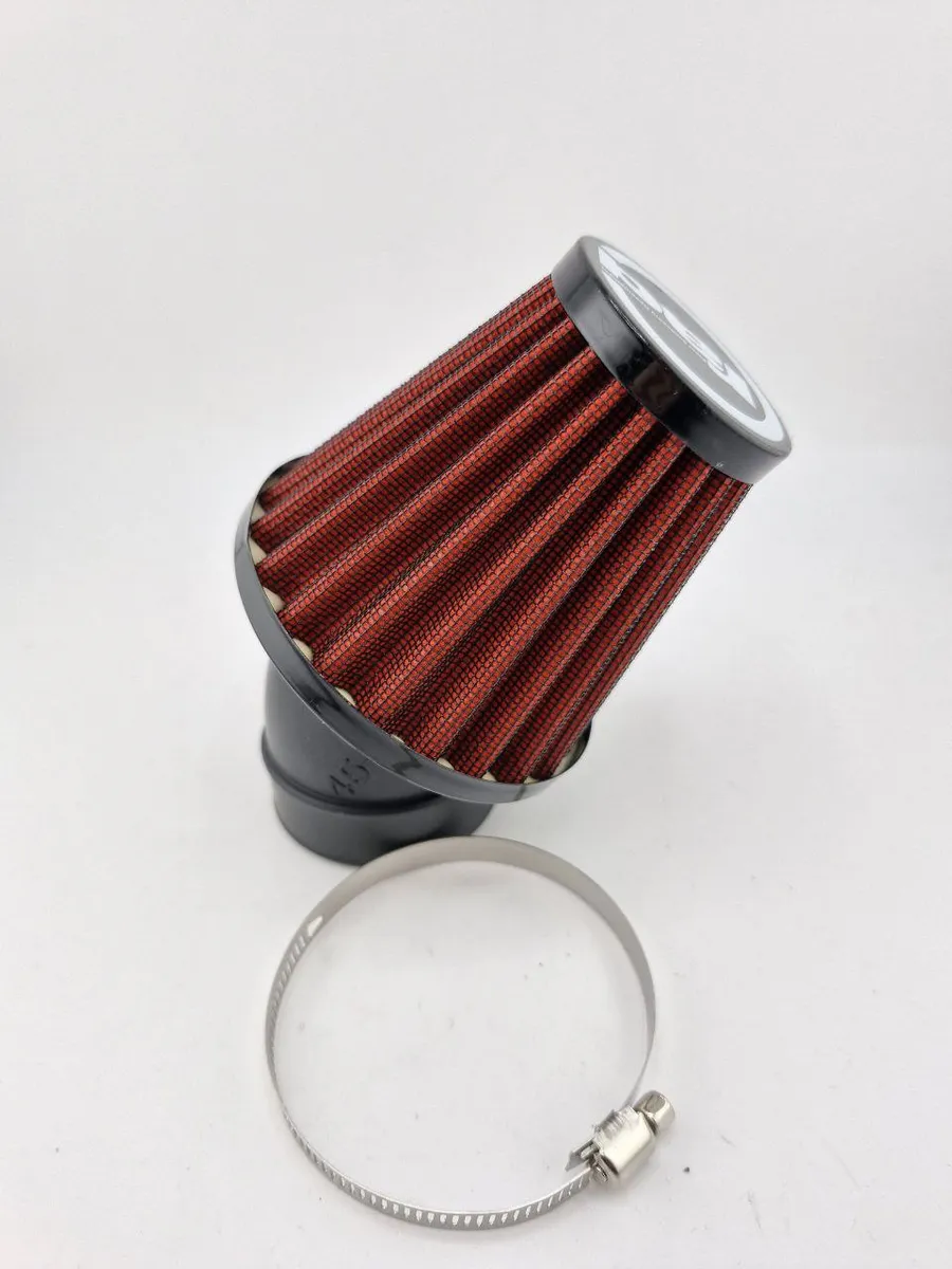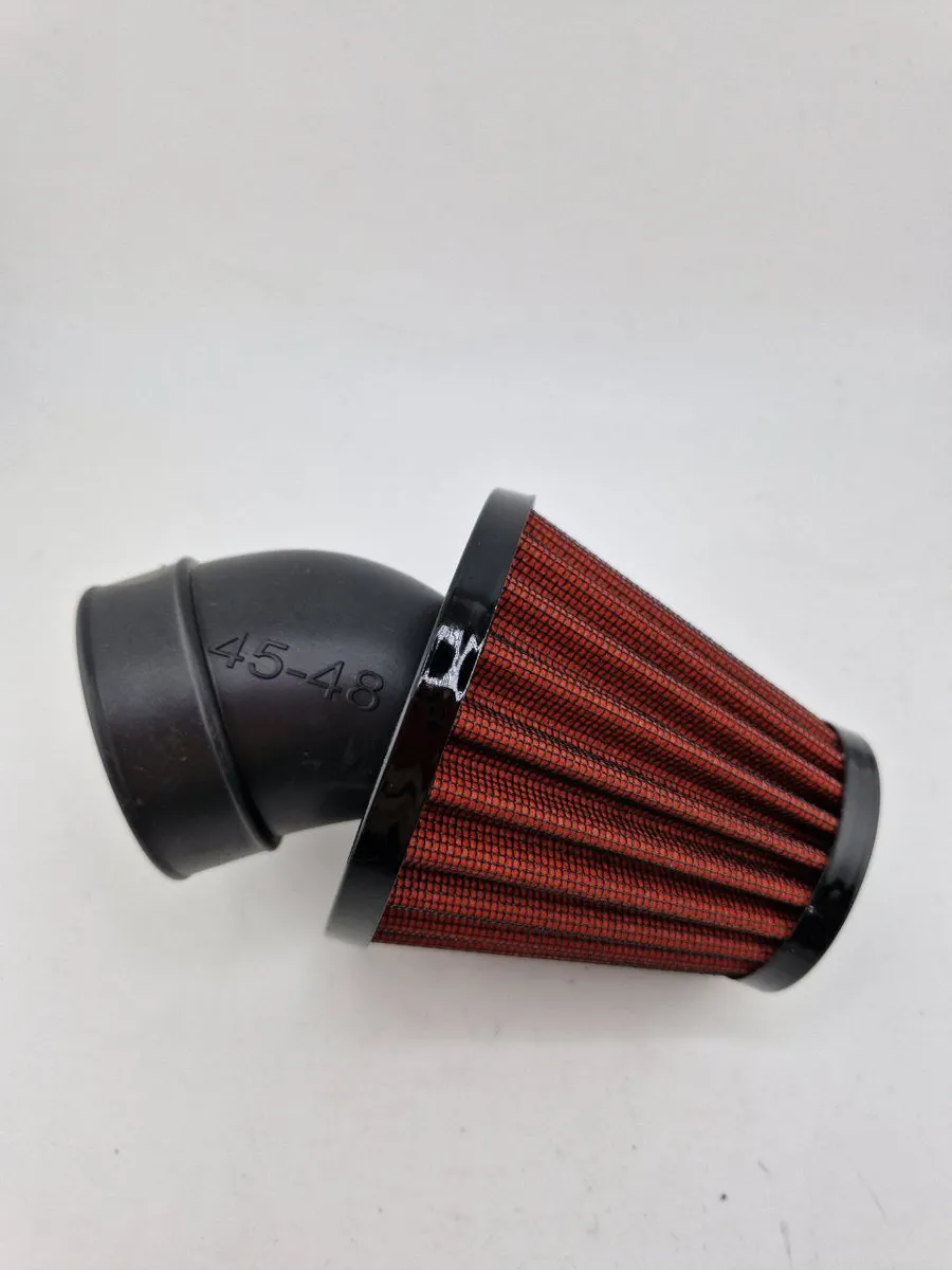 Воздушный фильтр нулевого сопротивления поворотный d - 45-48 мм — это специализированный компонент, предназначенный для улучшения производительности двигателя мотоцикла.