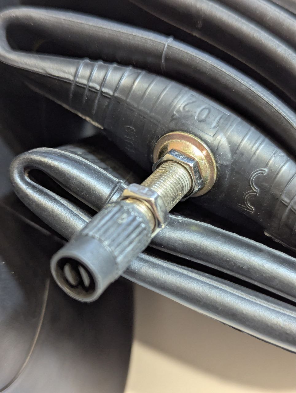 Вентиль TR4 – автомобильного типа (прямой), оснащен двумя гайками, шайбой и защитным колпачком. Это позволяет надежно закрепить вентиль в отверстии обода, исключив его смещение и потерю герметичности. Благодаря высокому качеству и полной комплектации, камера не требует дополнительных доработок или аксессуаров для установки.