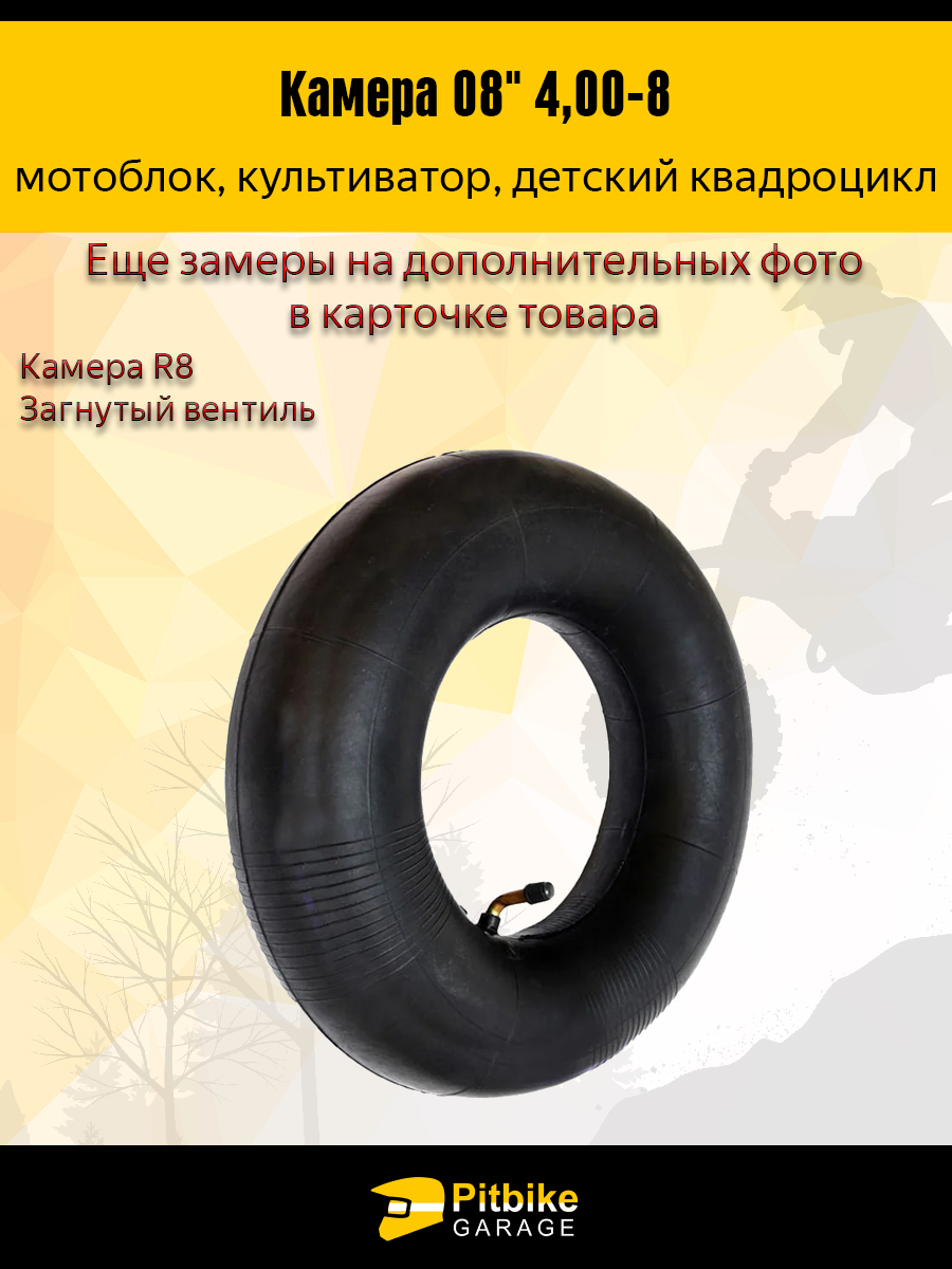 Камера 08" 4.00-8 (R8) — прочная и надёжная камера для детских квадроциклов, мотоблоков, культиваторов и другой техники с размером колеса R8–4.0.