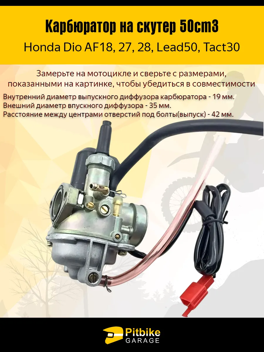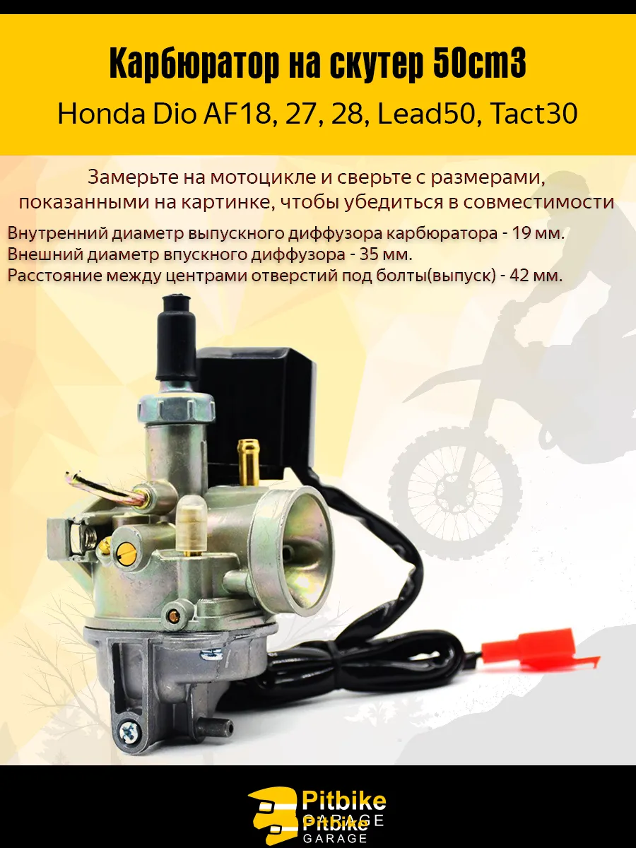 Основная функция карбюратора заключается в формировании правильной смеси воздуха и топлива перед подачей в цилиндр двигателя. От стабильности этого процесса зависит эффективность работы силового агрегата, его ресурс и плавность отклика на газ. В конструкции предусмотрен диффузор диаметром 19 мм — ключевой элемент, регулирующий объем поступающего воздуха. Такой размер обеспечивает сбалансированную подачу смеси и подходит для стандартных конфигураций двигателя Honda Dio, позволяя поддерживать стабильную работу без перебоев и потери мощности.