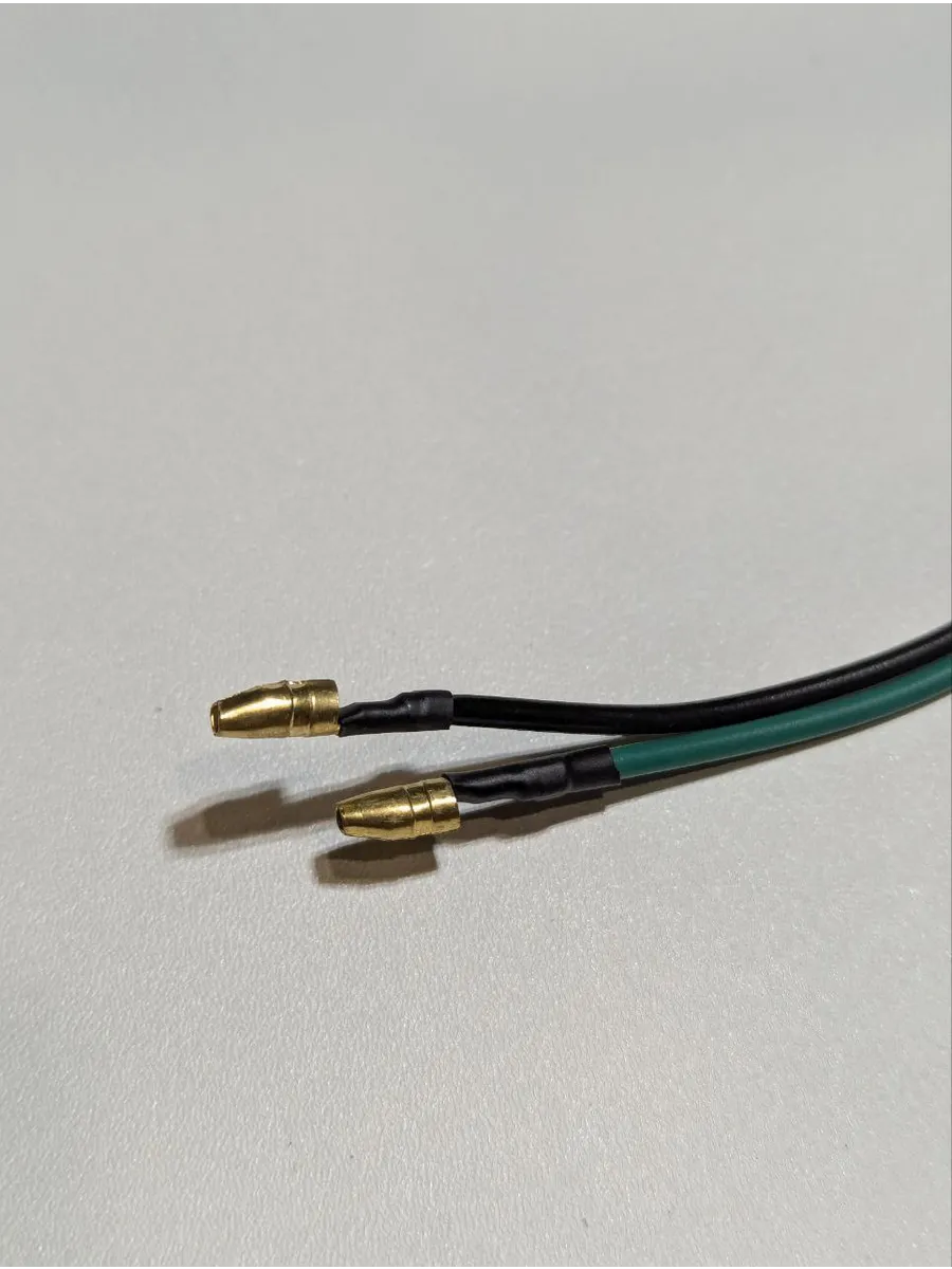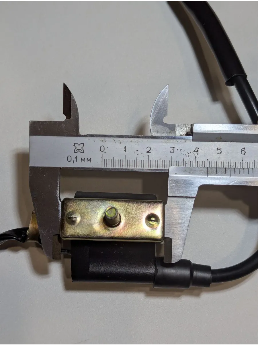 Изготовлена из прочного пластика и металла, с надежной изоляцией кабеля. На фотографиях представлены точные замеры: ширина корпуса — 43 мм, длина монтажной планки — около 58 мм, высота шпильки — 21 мм. Коннекторы стандартные – «папа» под разъем 6.3 мм, провода: чёрный и зелёный сечением 1 мм². Длина кабеля достаточна для удобного монтажа без удлинителей.