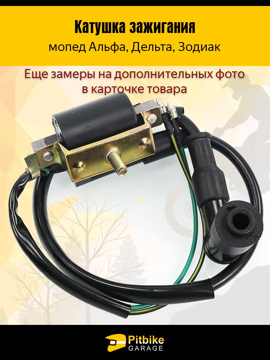 Катушка зажигания мопед Альфа, Дельта - с проводом и свечным колпачком — мотозапчасть или аксессуар для мотоцикла. Используется для ремонта, замены и регулярного обслуживания. Обеспечивает стабильную работу и длительный срок службы. Ищете надежную катушку зажигания для своего мопеда Альфа, Дельта или Зодиак? Тогда вы по адресу! Мы представляем качественную и проверенную временем катушку, которая обеспечит стабильный запуск вашего мопеда в любое время года. Это не просто запчасть — это ключ к стабильной и уверенной работе двигателя.