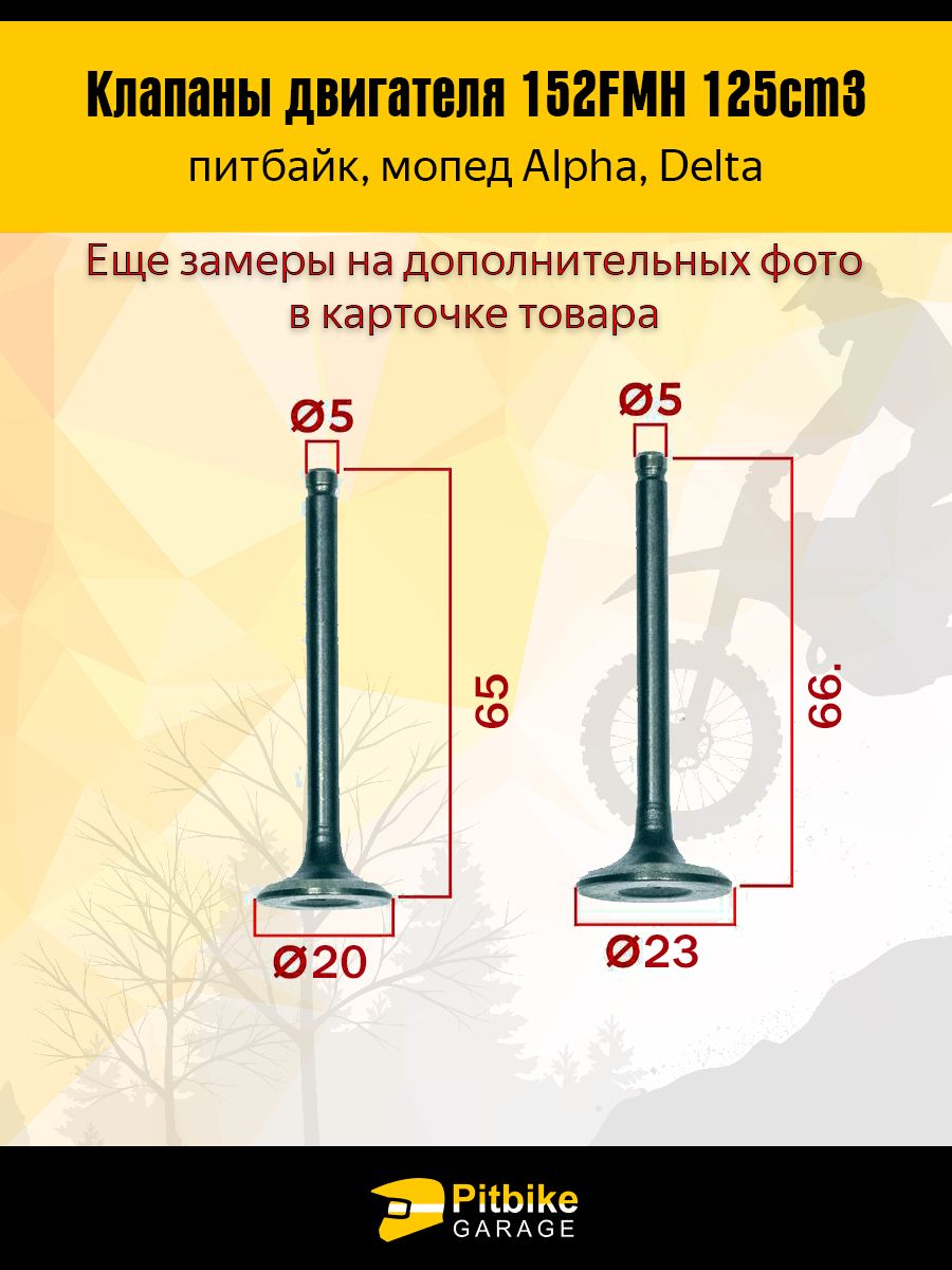 Клапаны впускной и выпускной двигателя 152FMH 125cc — точный размер, стабильная работа мотора