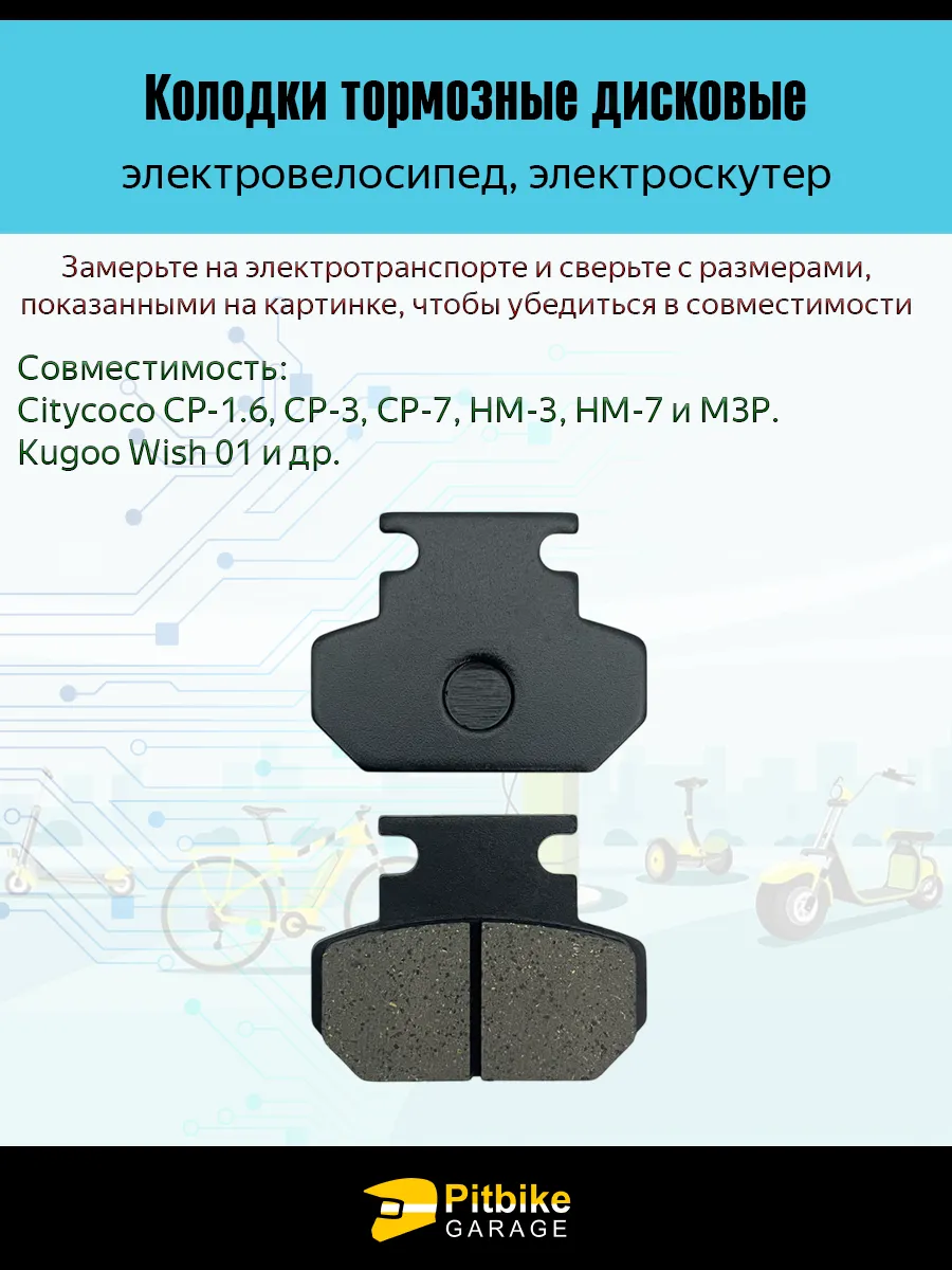 Колодки подходят для моделей Citycoco CP-1.6, CP-3, CP-7, HM-3, HM-7, M3P, Kugoo Wish 01 и других электровелосипедов и электроскутеров с аналогичной тормозной системой.