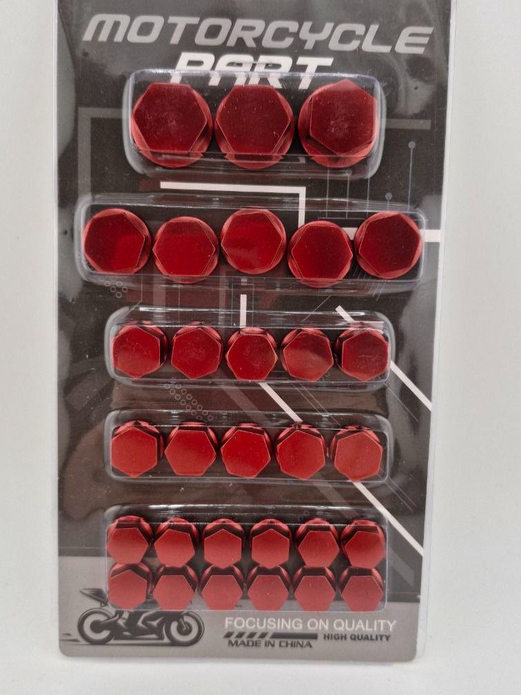 Для чего подходят: – Для болтов и гаек на раме, маятнике, тормозных дисках, двигателе, рулевой – Как декоративная заглушка на винты и крепления – Для скрытия следов ржавчины и царапин – Для выделения деталей мотоцикла в красной тематике