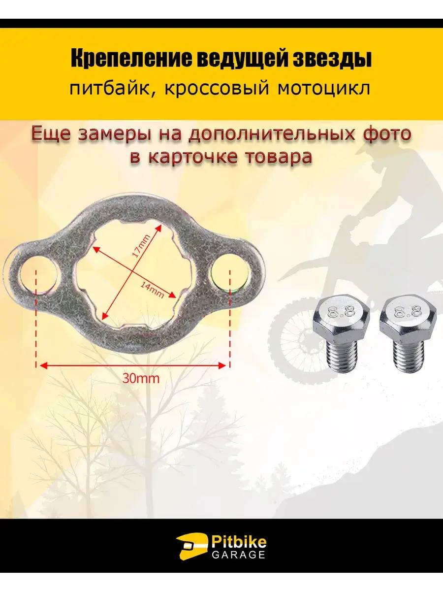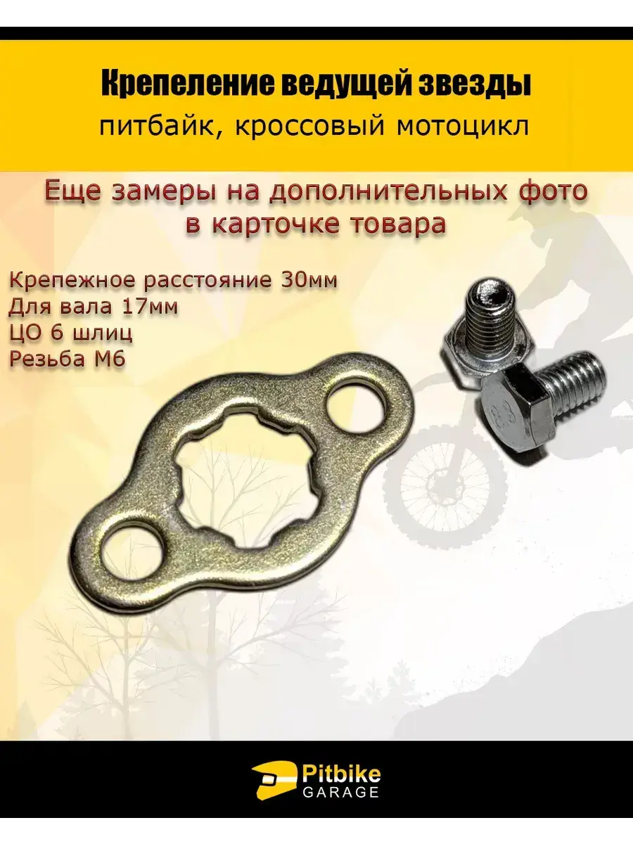 Крепление ведущей звезды вал 17мм - надежная деталь для вашего питбайка. Изготовленное из прочного металла, оно гарантирует долговечность и устойчивость к высоким нагрузкам. Крепление совместимо с широким спектром моделей питбайков, таких как Kayo, Irbis, TTR, JMC, Progasi, BSE, Alpha, Delta и Orion, что делает его универсальным решением для многих владельцев. Установка осуществляется с помощью болтов, что обеспечивает простоту и удобство монтажа.