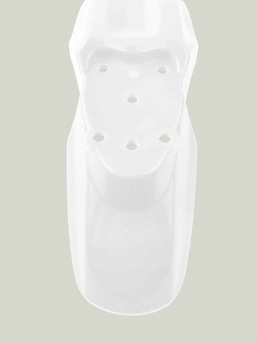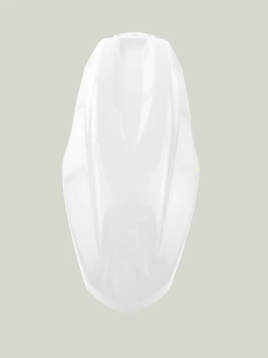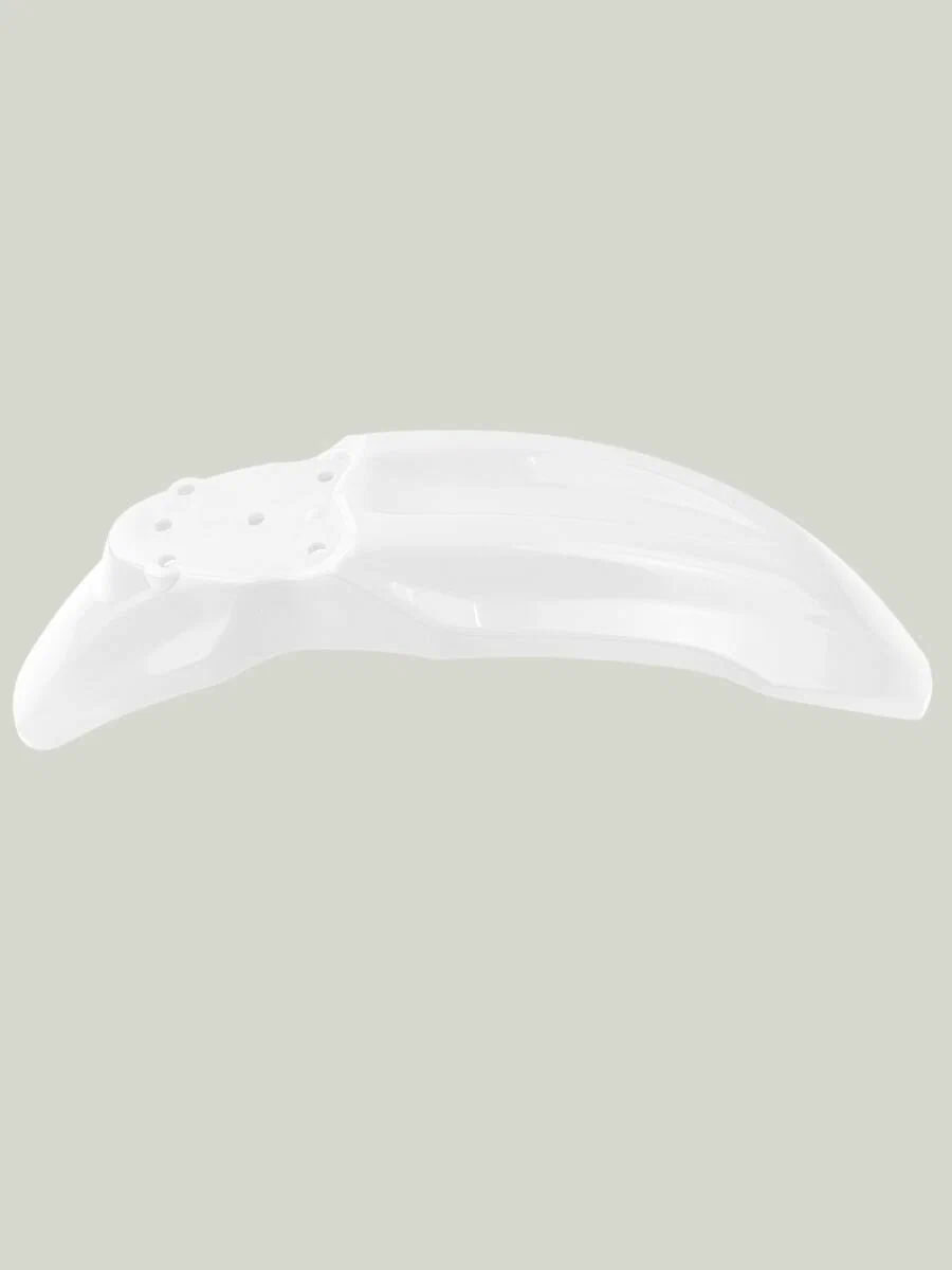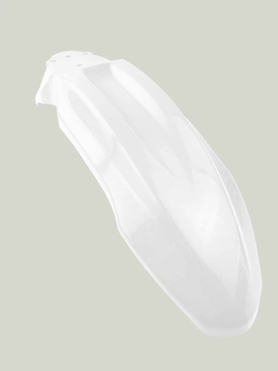Материал пластика обладает умеренной гибкостью, что снижает риск трещин при падении или ударах. Поверхность крыла гладкая, легко очищается от загрязнений, устойчива к выцветанию и УФ-излучению. Белый цвет изделия может быть окрашен или задекорирован под индивидуальный стиль владельца.