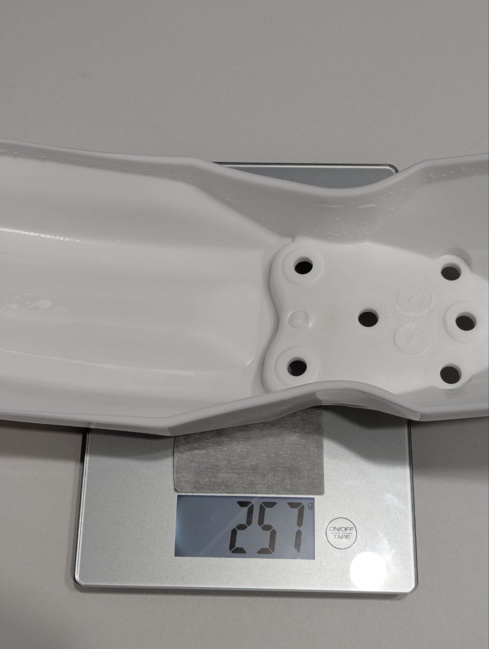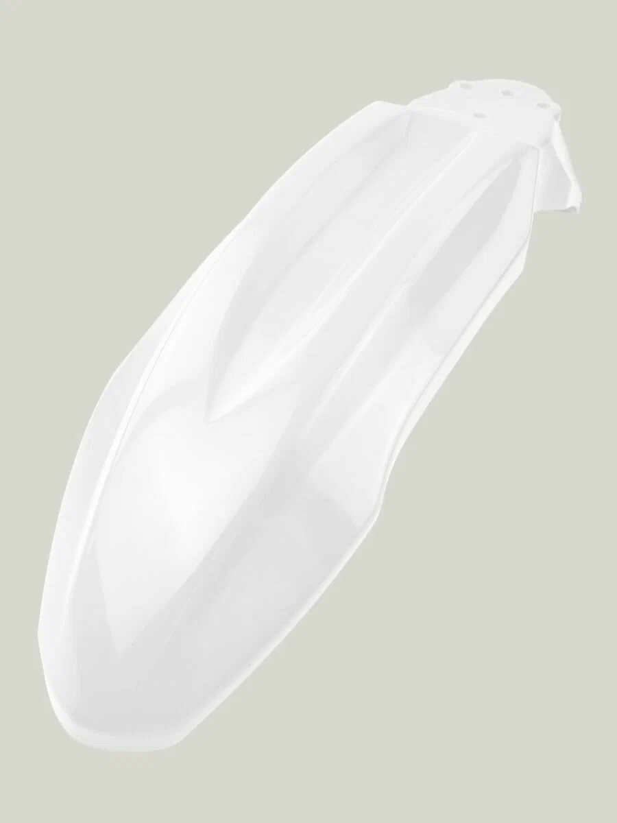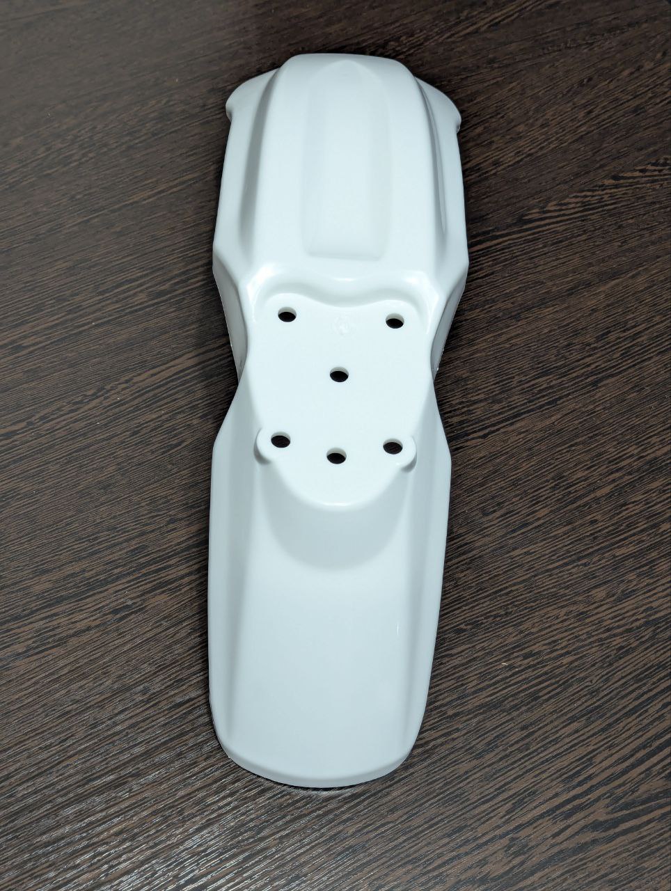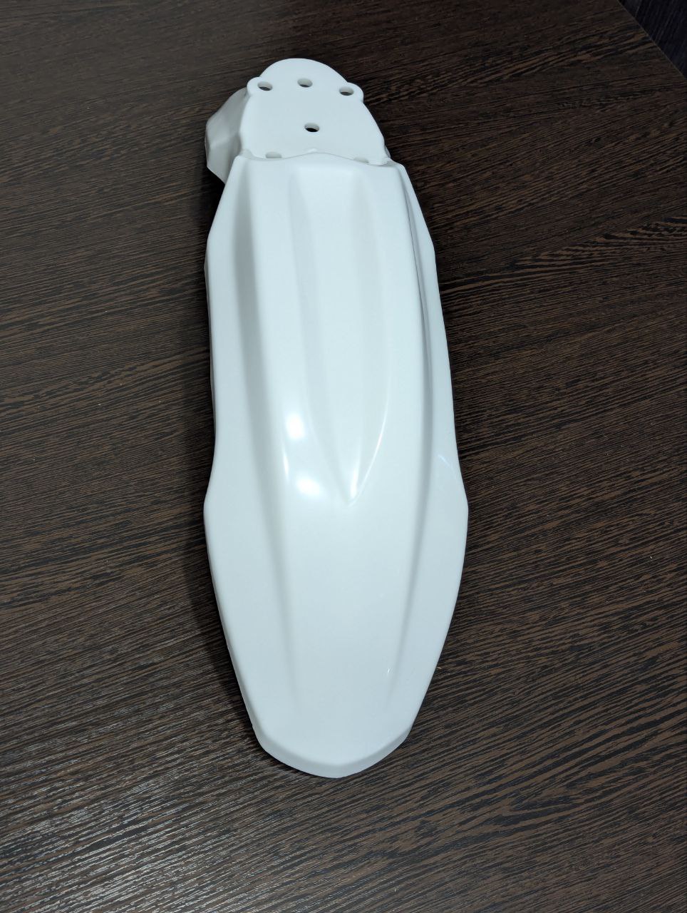 Материал пластика обладает умеренной гибкостью, что снижает риск трещин при падении или ударах. Поверхность крыла гладкая, легко очищается от загрязнений, устойчива к выцветанию и УФ-излучению. Белый цвет изделия может быть окрашен или задекорирован под индивидуальный стиль владельца.