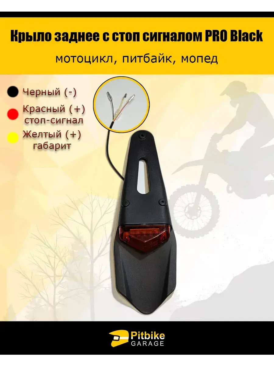 Крыло заднее с стоп сигналом PRO Black (универсальное) мотоцикл, питбайк, мопед
