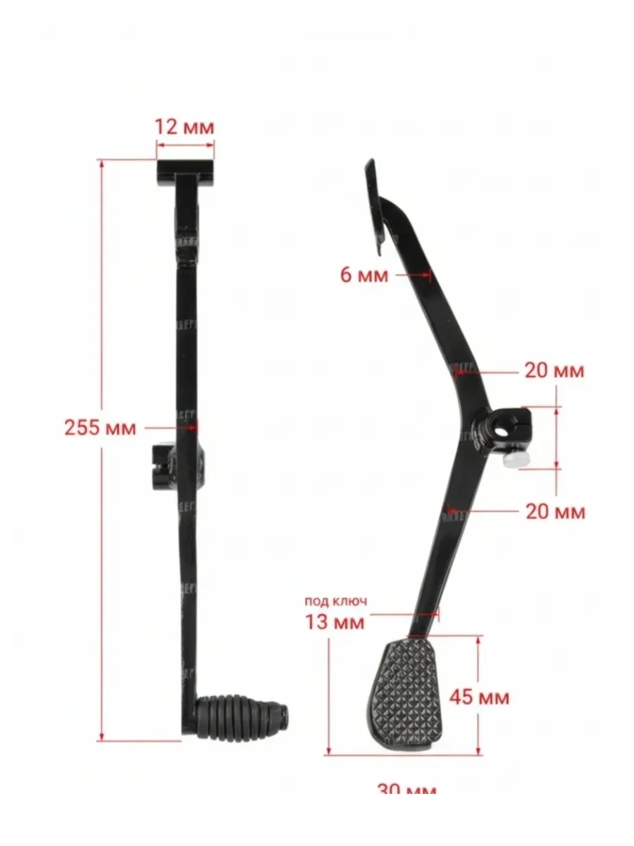 Чёрная ножка переключения передач — это важная деталь для многих китайских четырёхтактных мопедов и мотоциклов, таких как Alpha (Альфа), Lux (Люкс) 2014+, RX11, Delta (Дельта), Irbis (Ирбис) моделей GS/TTR, Regulmoto (РегулМото) SK, Atlant (Атлант) Муравей, Карпаты и Virago (Вираго). Эта запчасть оснащена стандартным шлицевым валом, который подходит для большинства китайских мопедов, однако перед покупкой необходимо проверить длину и форму рычага, поскольку они могут отличаться у разных моделей.
