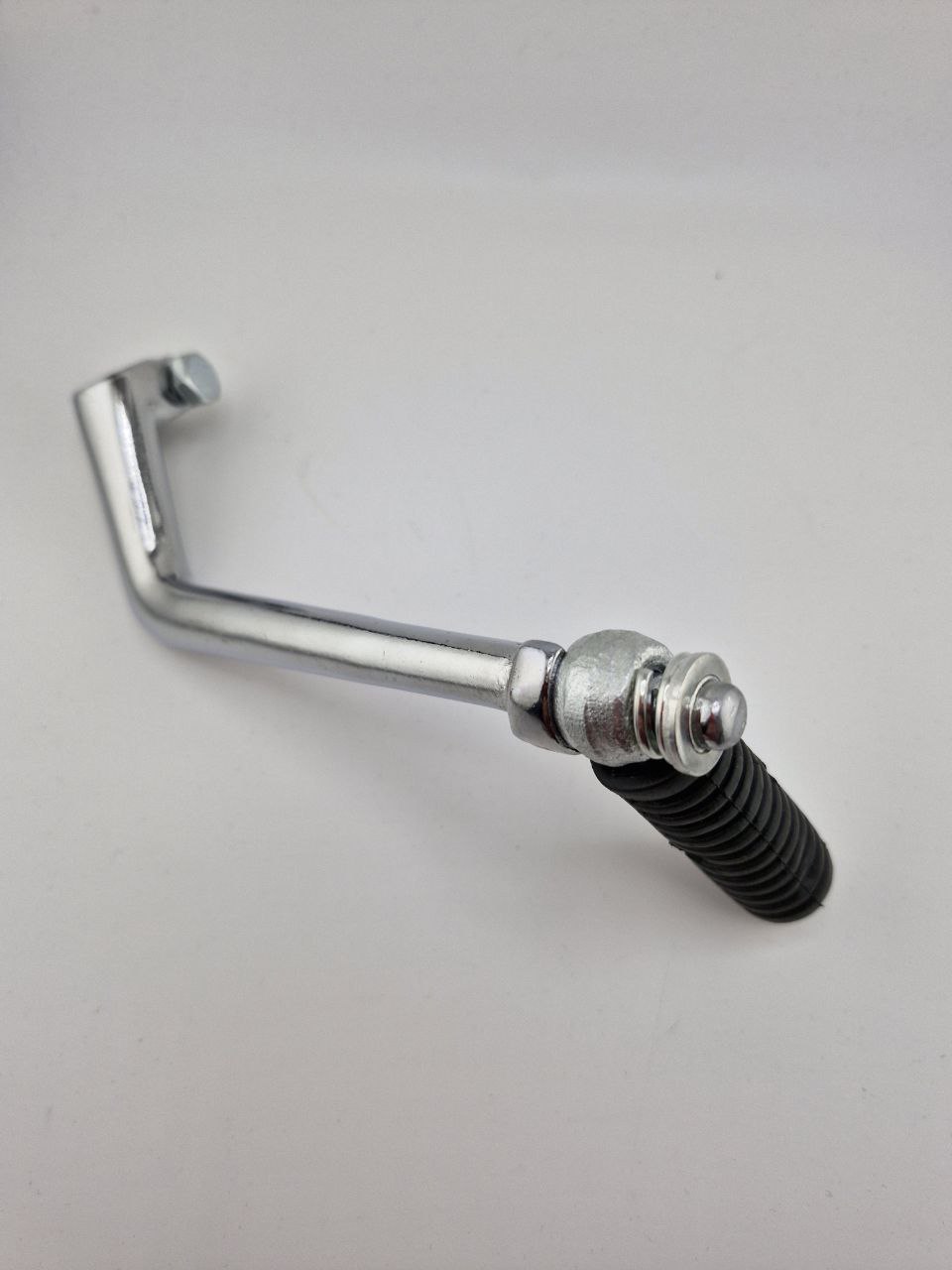 Применение: Рычаг предназначен для механического запуска двигателя мопеда, особенно в условиях отсутствия электростартера. Он необходим как основное средство запуска или как надёжный резервный вариант в любых условиях.опеде.
