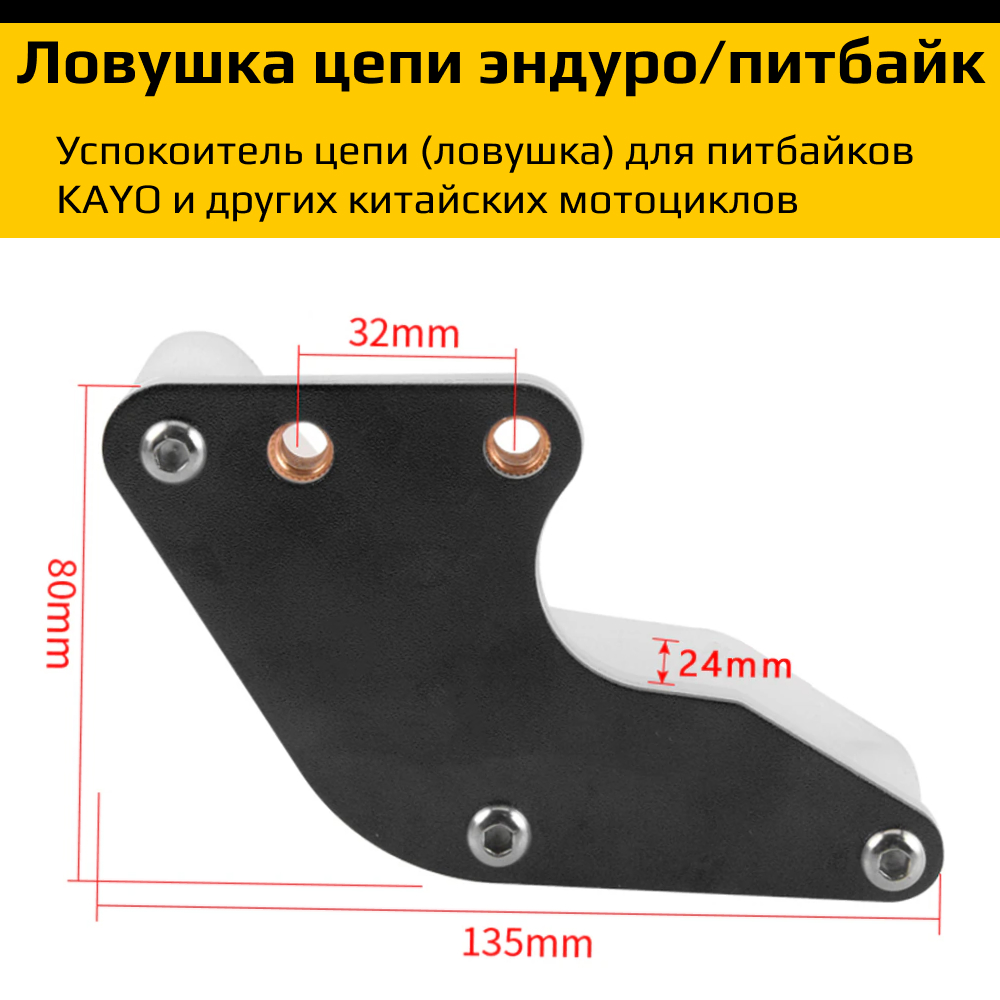 Применение:Предназначена для питбайков, кроссовых и эндуро мотоциклов, где высок риск слета или растяжения цепи. Особенно полезна для мотокросса, дерт-джампинга и трюковой езды. Преимущества:Надежно фиксирует цепь, предотвращая аварии