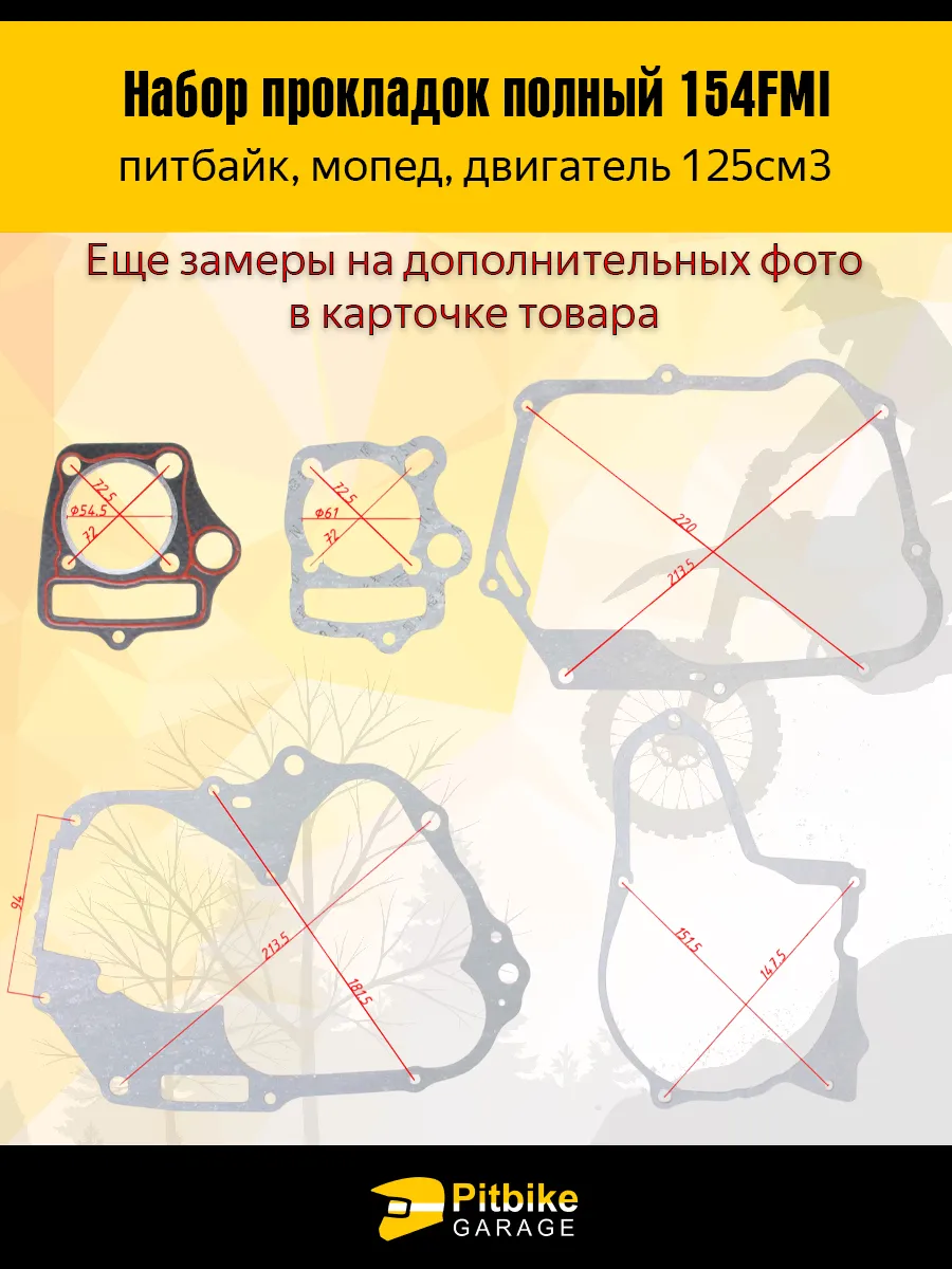 Ищете надёжный и проверенный набор прокладок для двигателя 154FMI 125 см³? Представляем универсальный комплект, который подойдёт большинству мотоциклов, питбайков и скутеров с мотором 154FMI. Это — качественное решение для ремонта, профилактики и полной замены прокладок в двигателе. Подходит как для стандартного обслуживания, так и для капитального ремонта.
