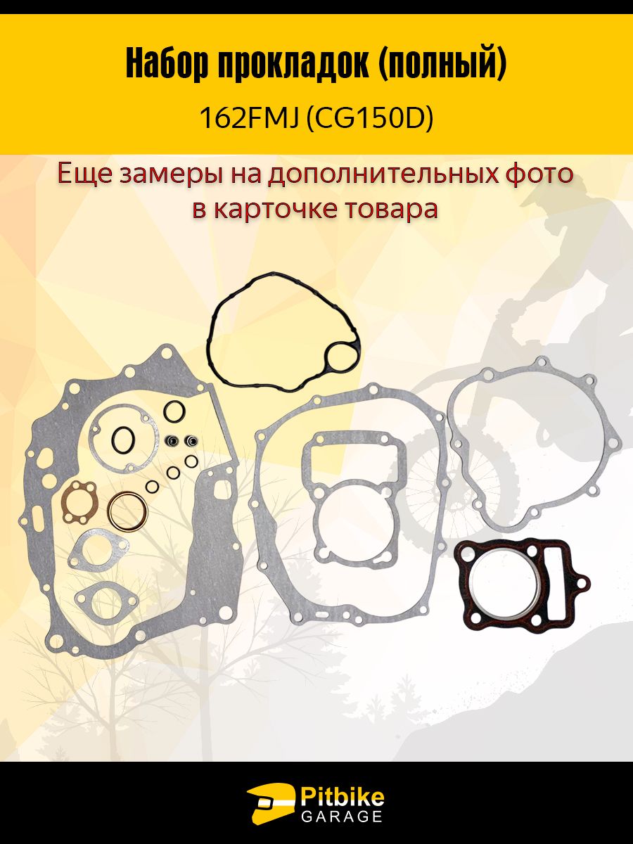 Идеально подходят для двигателей 162FMJ и 161FMJ серии CB/CG150. Полный комплект прокладок обеспечивает герметичность, долговечность и соответствие стандартам. Если вы ищете качественный набор прокладок для мотоцикла — вы нашли то, что нужно!