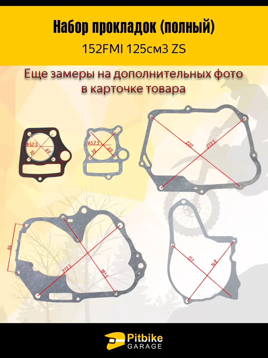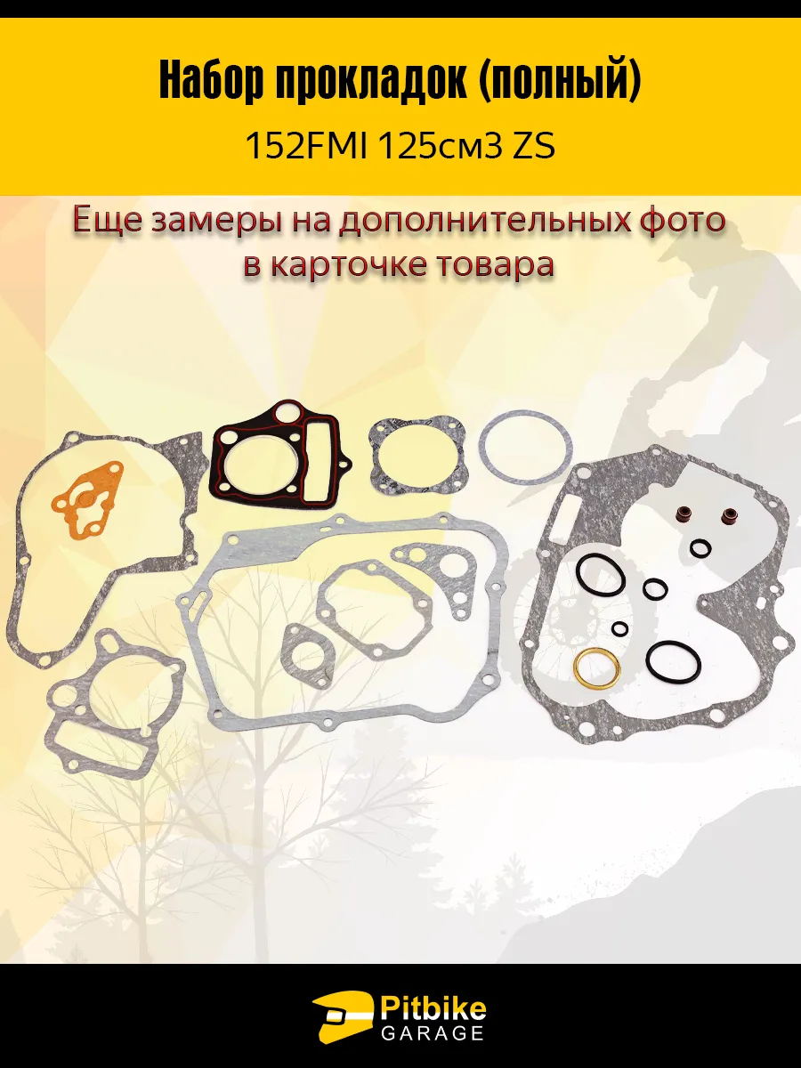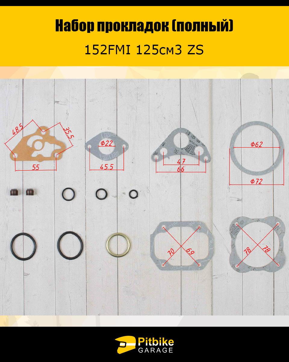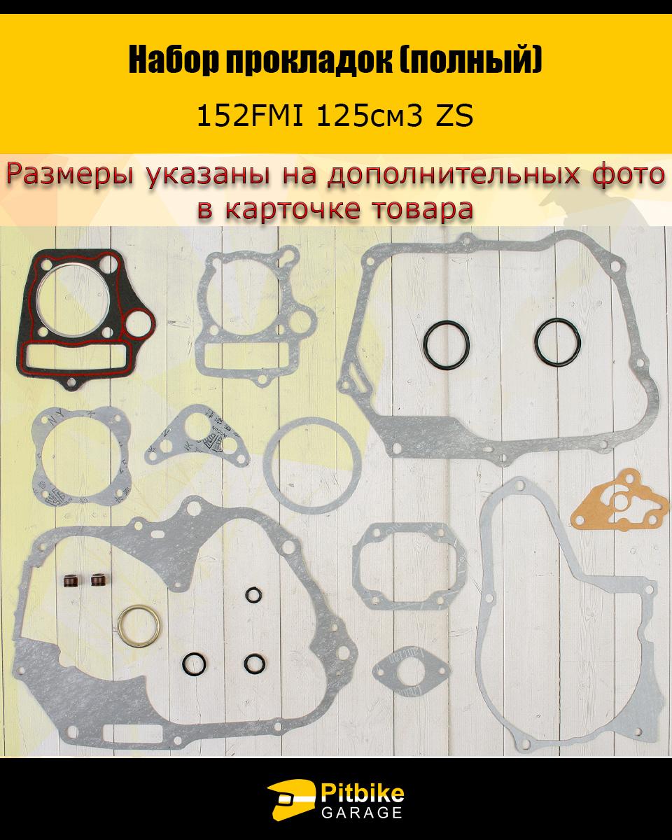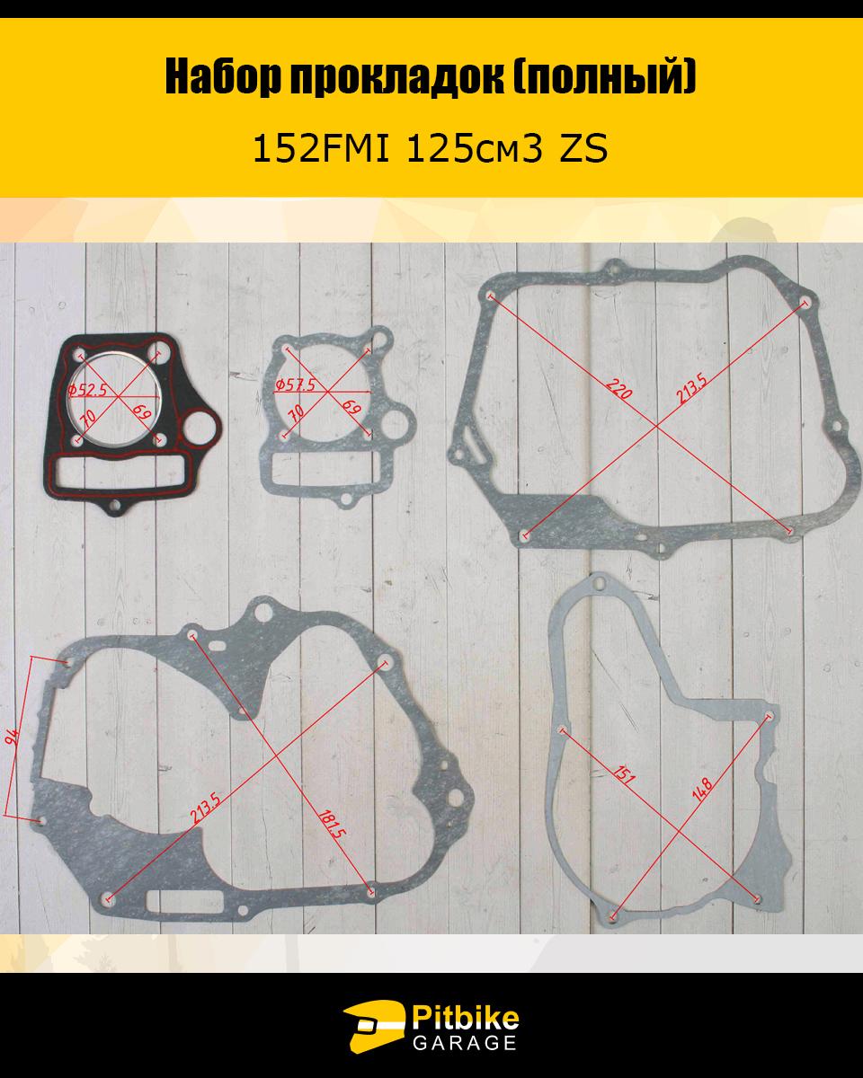 Набор прокладок (полный) 152FMI 125см3 ZS X-TECH. Подходят для большинства двигателей питбайков и мопедов. Также с двигателем 125 куб. 154 FMI, FMH. Прокладка крышки звезды грм маленькая. Бод большую крышку прокладка покупается отдельно, или решается герметиком.