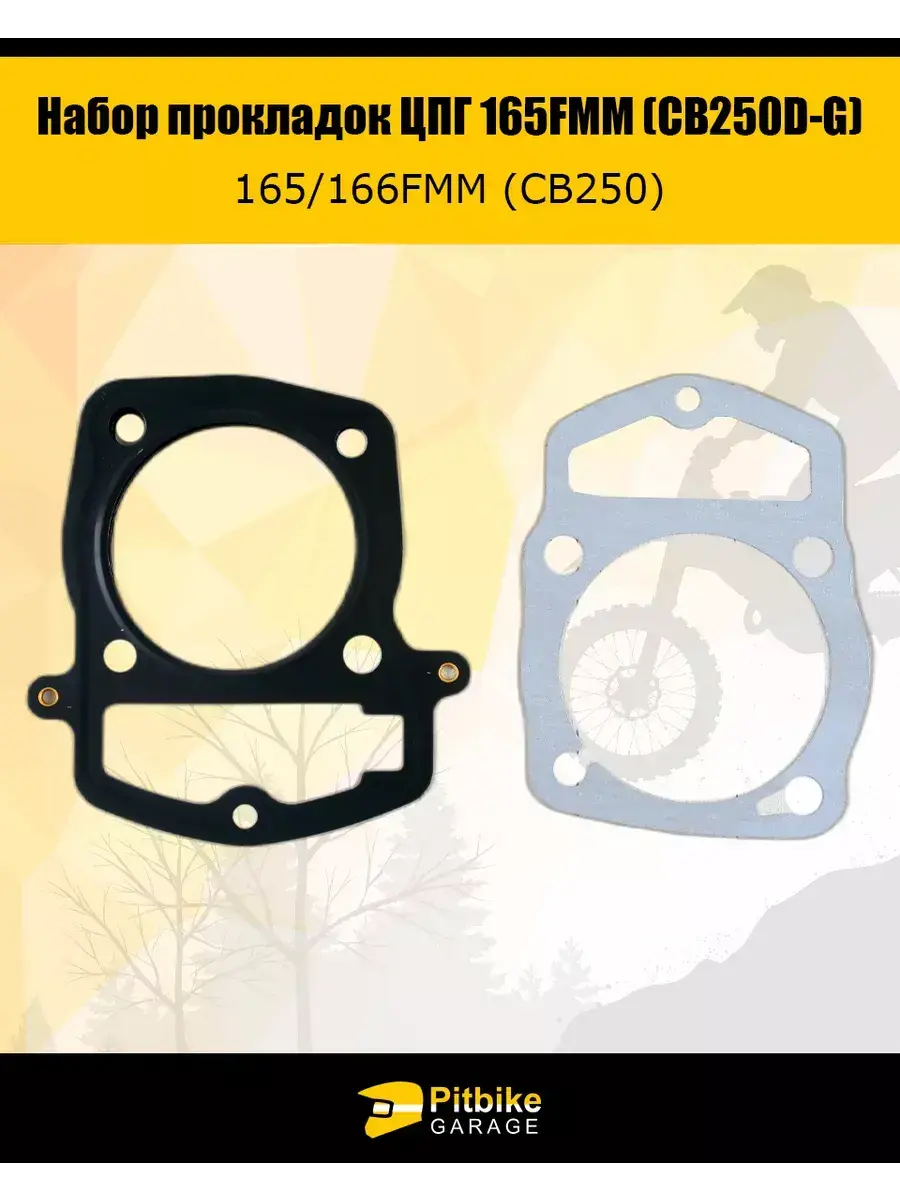 Набор прокладок ЦПГ 165FMM (CB250D-G) | Металлопакет + паронит | Для двигателей 165FMM, 166FMM, CB250 | Подходит IRBIS, KAYO, BSE, BRZ, TTR, Motoland Надежный и проверенный набор прокладок цилиндро-поршневой группы (ЦПГ) — отличный выбор для замены изношенных элементов двигателя. Обеспечивает герметичность, снижает вибрации и шум, повышает срок службы мотора и экономит ваши нервы при ремонте. Идеально подходит для мотоциклов с двигателями CB250D-G, 165FMM, 166FMM, включая IRBIS, KAYO, BRZ, BSE и другие китайские аналоги. ХАРАКТЕРИСТИКИ: Модель: CB250D-G Материал: Металлопакет + паронит Комплектация: 2 прокладки ЦПГ Тип: Без крепления Вес с упаковкой: 45 г Производство: Китай СОВМЕСТИМОСТЬ: Двигатели: 165FMM, 166FMM, CB250 Мотоциклы: IRBIS TTR, KAYO T2/T4, BRZ 250, Motoland 250, BSE Z6/Z7, JMC 250 и др. Подходит как для двигателей с балансиром, так и без (уточните маркировку типа: CG, CB, CG-B, CBB и т.п.) ПРЕИМУЩЕСТВА: Идеальная герметичность — снижает риск утечки масла и компрессии Высокая устойчивость к температурам и вибрациям Совместимость с большинством китайских моторов 250 см³ Выгодная цена при отличном качестве Простота установки, даже при самостоятельной замене