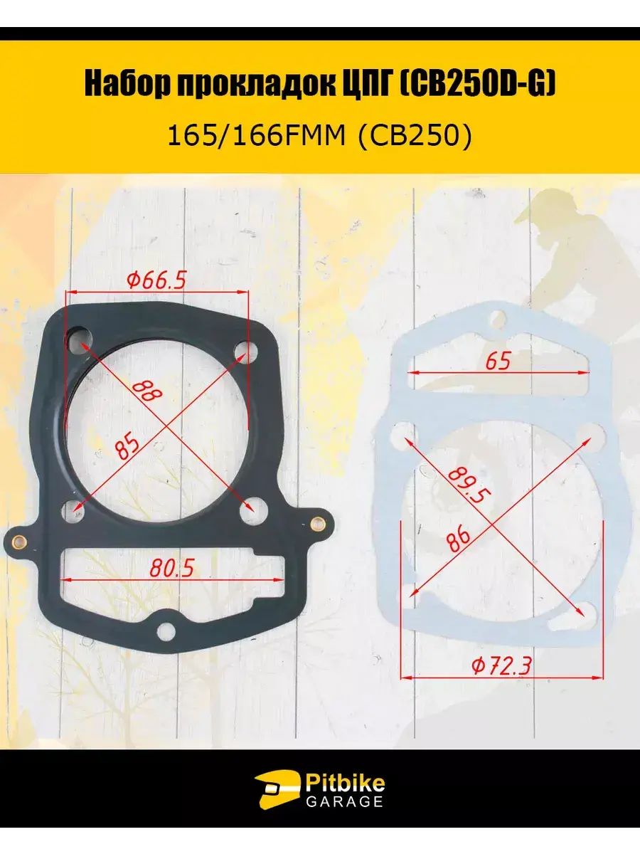 Набор прокладок ЦПГ 165FMM (CB250D-G) 2 штуки