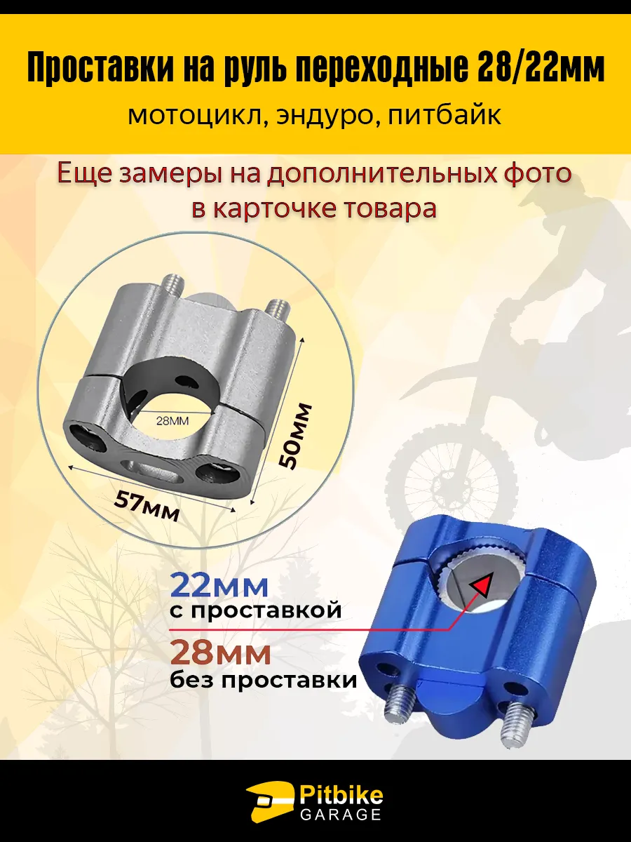 Переходные проставки руль мотоцикла эндуро FatBar 28/22мм 2 штуки