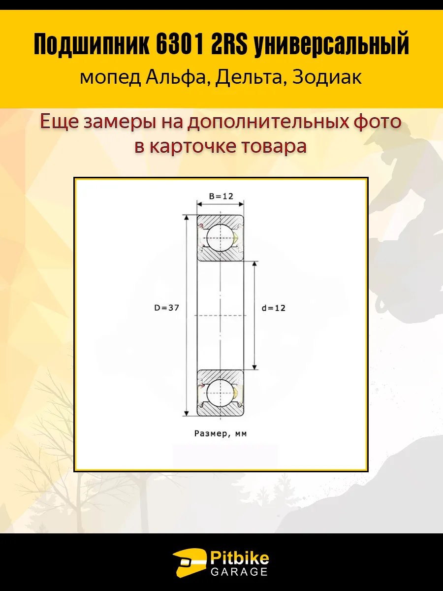 Подшипник задней оси 6301 2RS (180301) 12x37x12 — это универсальный шариковый радиальный однорядный подшипник закрытого исполнения, идеально подходящий для установки на заднюю ось мопедов Альфа, Дельта, Zodiak, Orion и многих других моделей китайской мототехники. Комплект состоит из двух надежных подшипников, каждый из которых обеспечивает стабильную и долговечную работу даже при высоких нагрузках и сложных условиях эксплуатации.