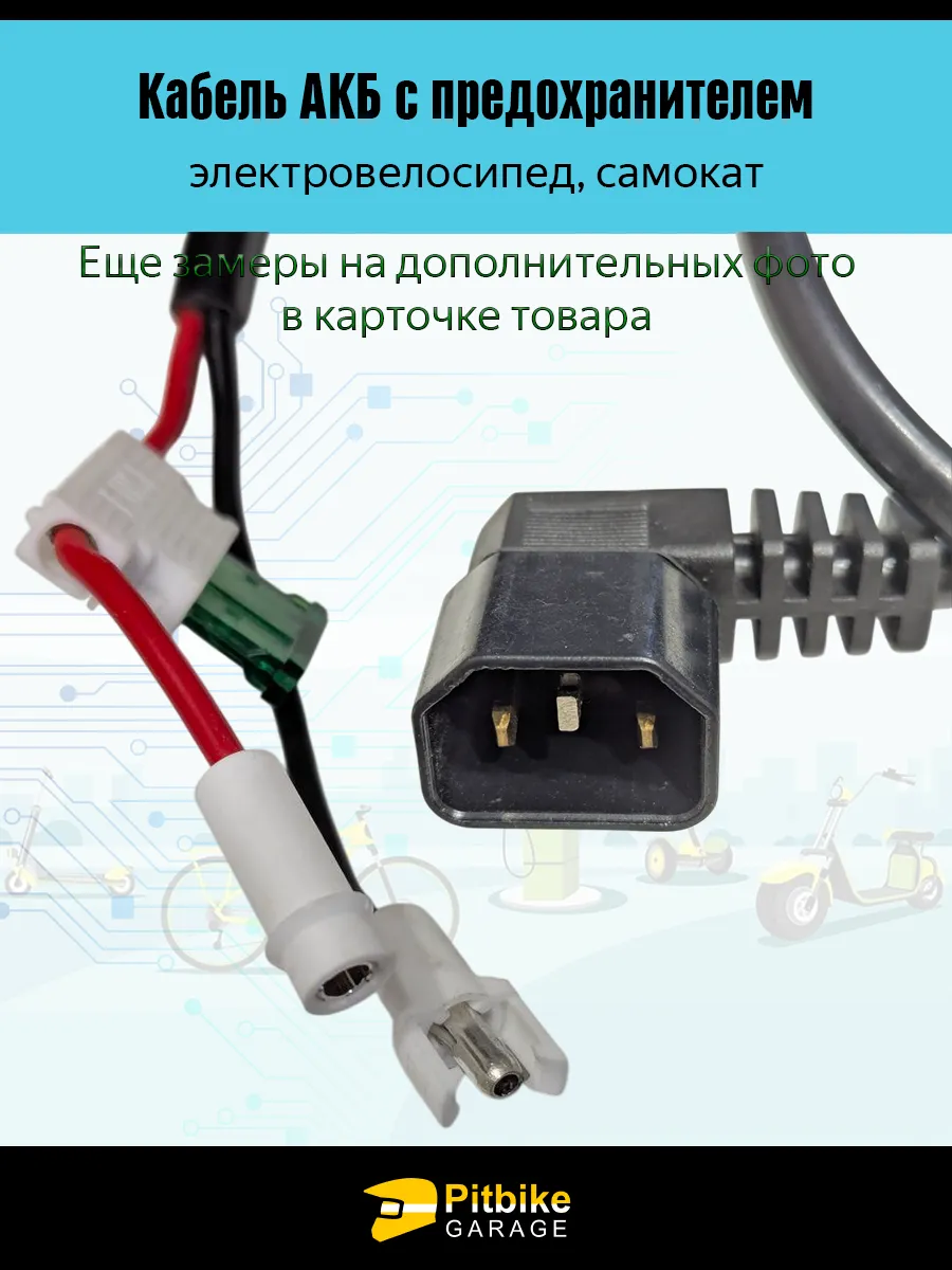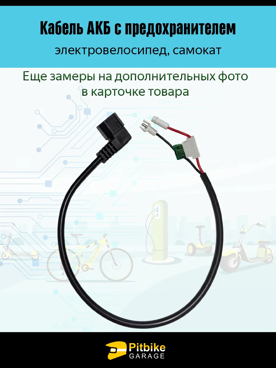 Кабель АКБ с предохранителем для электровелосипеда и электросамоката представляет собой специализированный элемент силовой проводки, предназначенный для безопасного и надежного соединения аккумуляторной батареи с контроллером питания. Конструкция кабеля разработана с учетом требований к электрической нагрузке, долговечности и совместимости с популярными моделями электротранспорта.