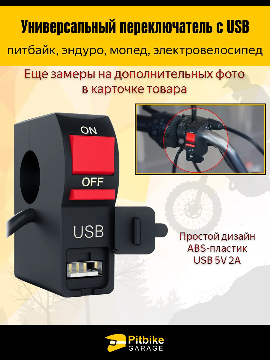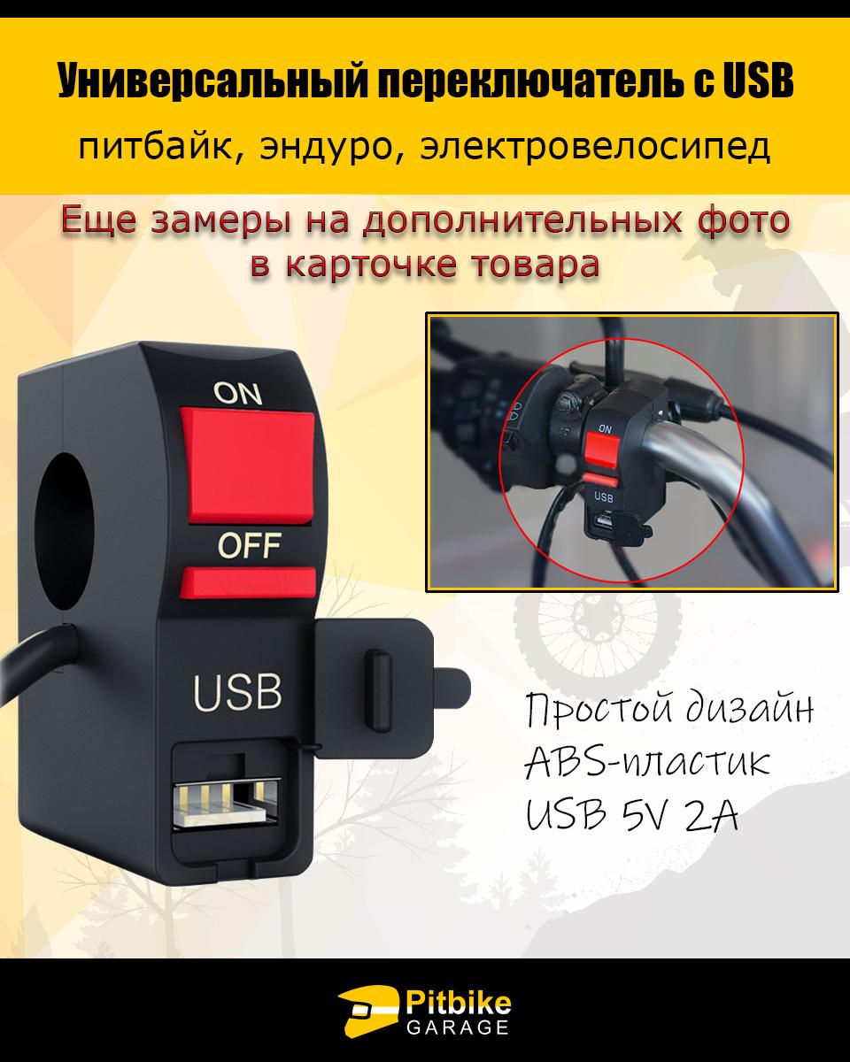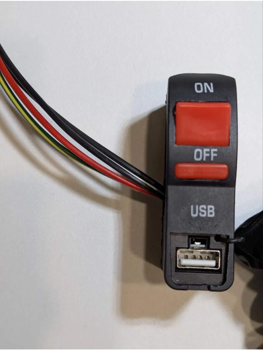 Универсальный переключатель с USB 5V 2A на руль 22 мм – это практичное решение для мотоциклов, питбайков, эндуро, скутеров, электровелосипедов и электросамокатов. Он совмещает в себе функцию стандартного переключателя (ON/OFF) и удобный USB-разъём для подзарядки гаджетов во время поездки.