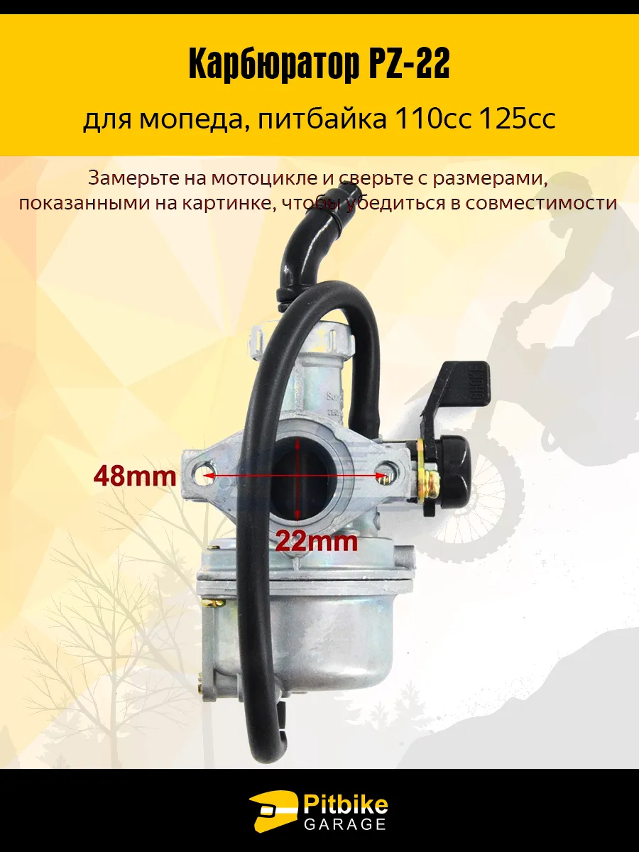 Карбюратор PZ22 22 мм — универсальное и надежное решение для мопедов, питбайков и квадроциклов с двигателями объемом 110 и 125 кубических сантиметров. Данная модель широко применяется в технике популярных брендов IRBIS, KAYO, Kawasaki, Lifan, Ataki, ABM, Avantis, BRZ, BSE, Bars, Full Crew, Hasky, JMC, Motoland, Minsk (Минск), PWR Racing, Patron, Pitster Pro, Racer, Progasi, Regulmoto, Stels, Alpha, Delta, Orion, а также совместима с Pit Bike, ATV, CRF, SSR, Sunl, Taotao и другими аналогичными моделями.