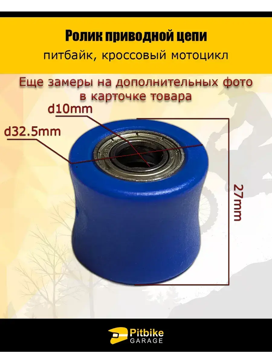 Ролик натяжителя цепи / Ролик приводной цепи для питбайка, мотоцикла, эндуро, кросса (с подшипниками) — универсальный, синий, полиуретан