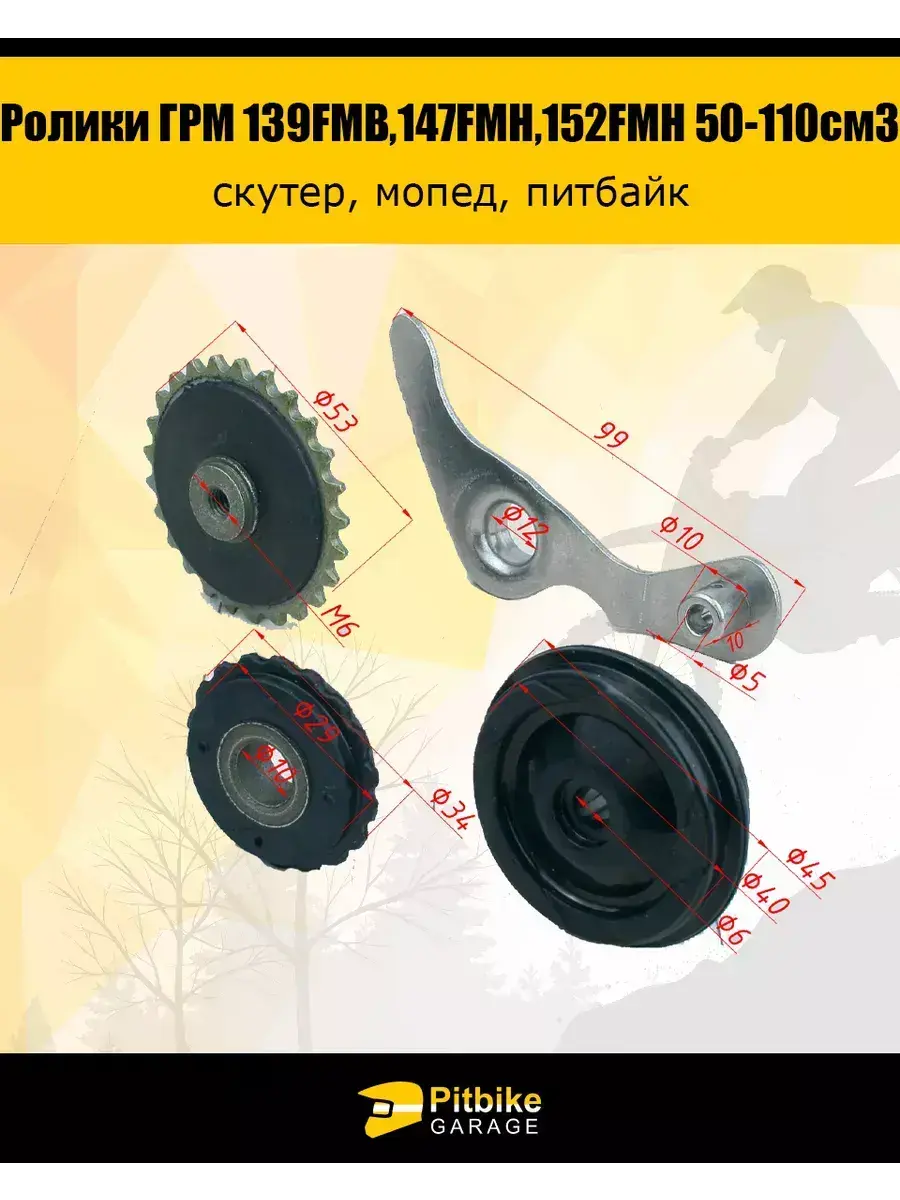 Ролики ГРМ (комплект=3шт) 139FMB,147FMH,152FMH 50-110см3 представляют собой высококачественные запчасти для мотоциклов, предназначенные для обеспечения плавности и надежности работы газораспределительного механизма. Эти ролики выполнены из прочных материалов, что гарантирует их долговечность и способность выдерживать высокие нагрузки. Комплект включает в себя ролики различных размеров (139FMB, 147FMH, 152FMH), что позволяет выбрать оптимальный вариант для конкретной модели мотоцикла. Размеры роликов варьируются от 50 до 110 см³, что обеспечивает универсальность применения и адаптацию под различные типы двигателей. Установка этих роликов поможет улучшить работу ГРМ, снизить износ и повысить общую надежность мотоцикла.