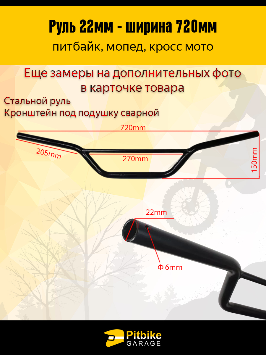 Улучшите управляемость своего байка с универсальным рулем 22 мм — решением, которое выбирают райдеры, знающие толк в деталях. Этот стальной руль сочетает в себе прочность, удобство и точную геометрию, подходящую для агрессивного бездорожья, скоростной трассы и повседневной езды.