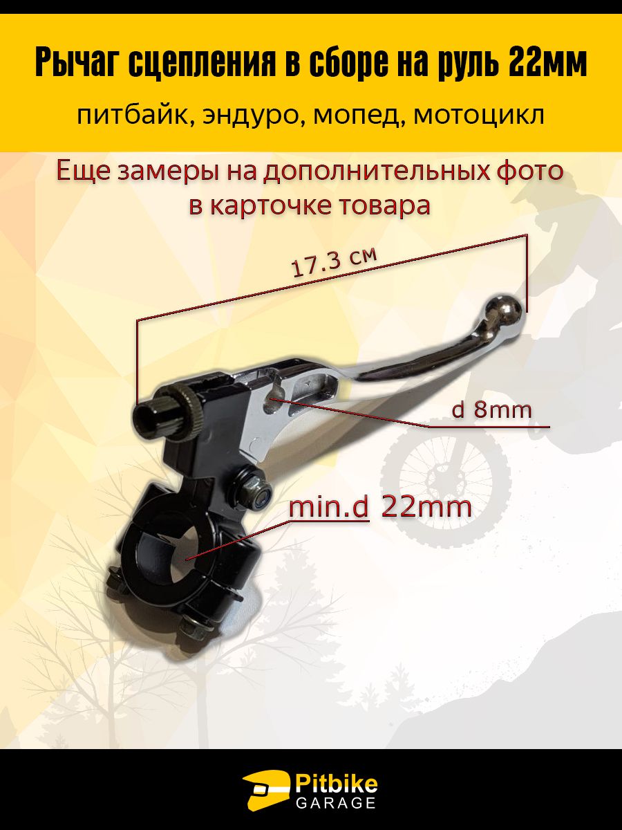 Рычаг сцепления в сборе на руль для мотоцикла эндуро, питбайк L- 173 — мотозапчасть или аксессуар для мотоцикла. Используется для ремонта, замены и регулярного обслуживания. Обеспечивает стабильную работу и длительный срок службы. Рычаг сцепления на руль 22 мм (в сборе): стиль и контроль на дороге