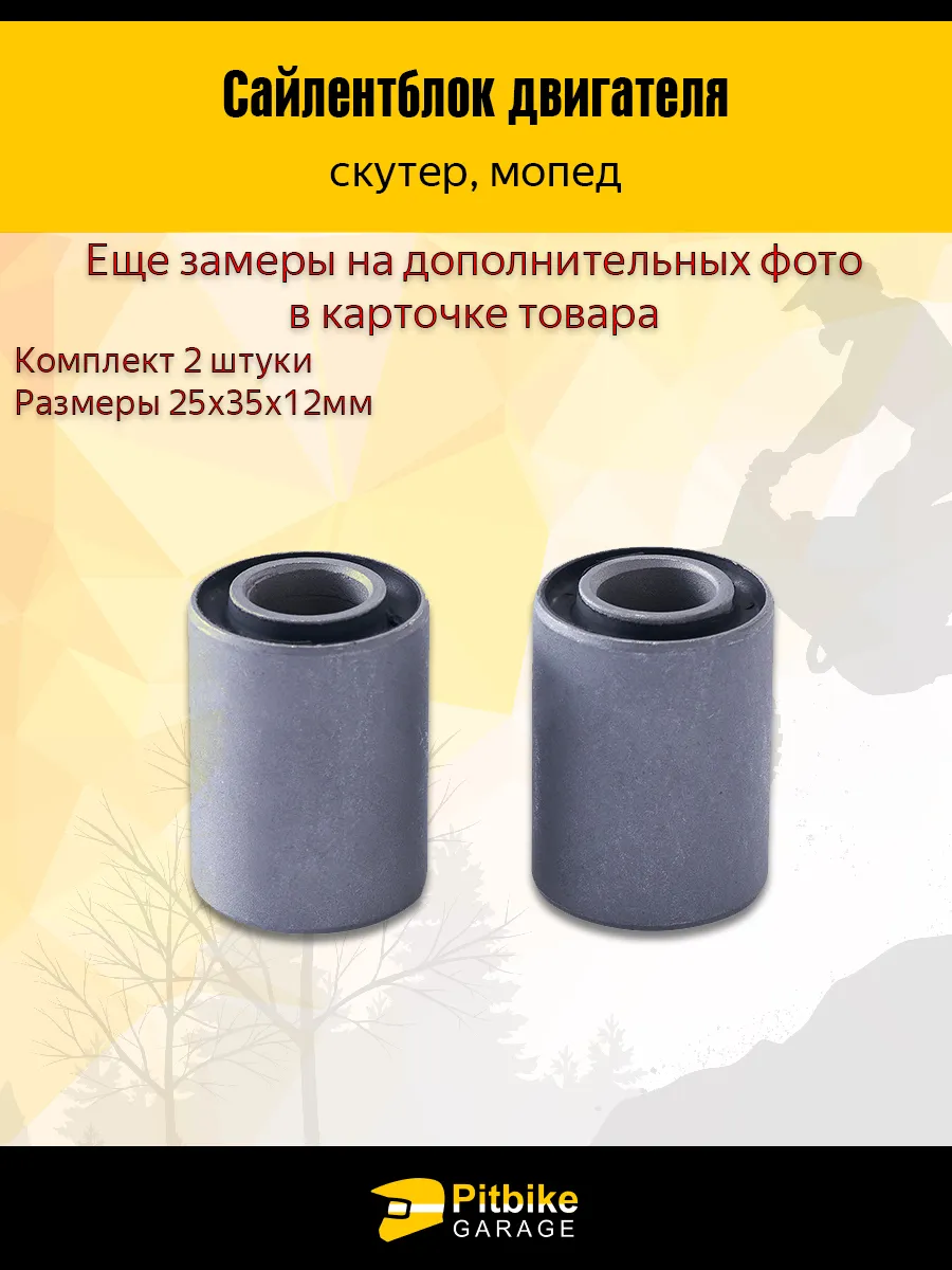 Сайлентблок двигателя для скутера и мопеда — это важная деталь, отвечающая за гашение вибраций и снижение шума при работе мотора. Подходит для установки на широкий спектр моделей скутеров и мопедов, обеспечивая комфорт и долговечность эксплуатации. Комплект включает 2 штуки, размеры каждой детали — 25×35×12 мм, что гарантирует совместимость с большинством популярных моделей.