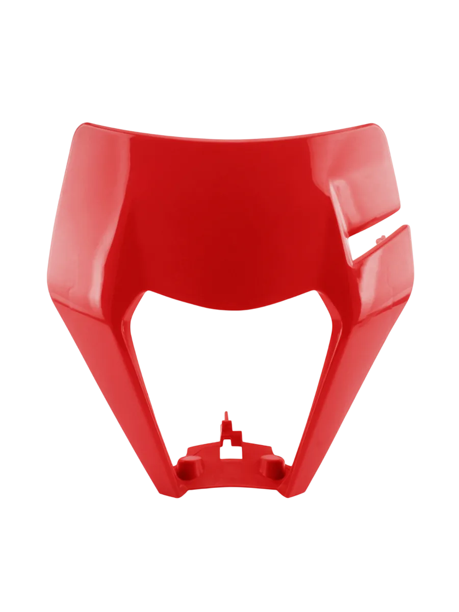 Щиток фары в стиле KTM, красный цвет — универсальный элемент защиты и тюнинга для кроссовых и эндуро мотоциклов. Идеально подходит для установки на модели с 2016 по 2023 год выпуска: KTM, AVANTIS, KAYO, ZUUM, BSE и другие аналоги.