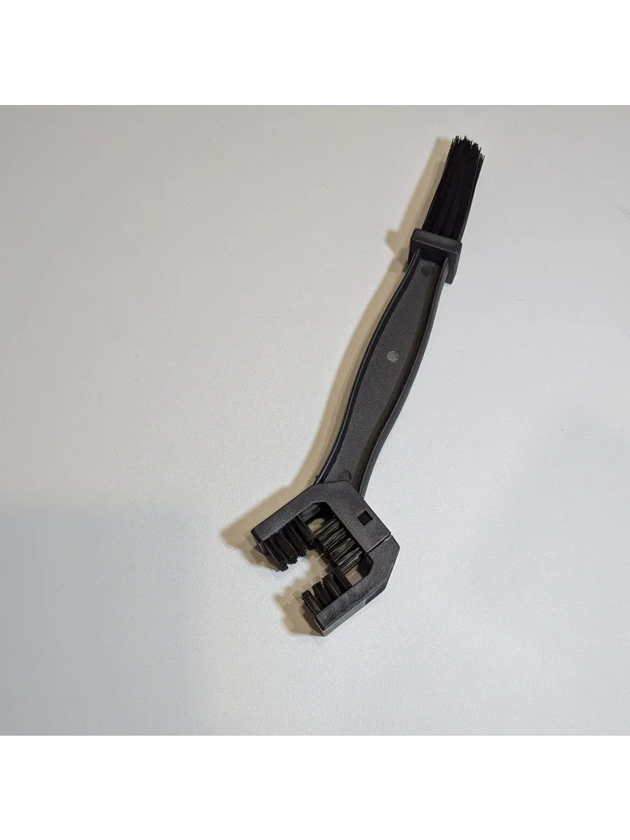 Конструкция щетки разработана с учетом особенностей цепей, что гарантирует эффективное удаление нагара и остатков смазки, продлевая срок службы вашего мотоцикла или велосипеда. Удобная форма ручки позволяет без усилий достигать труднодоступных мест, а жесткие щетинки обеспечивают глубокую очистку, не повреждая поверхность цепи.