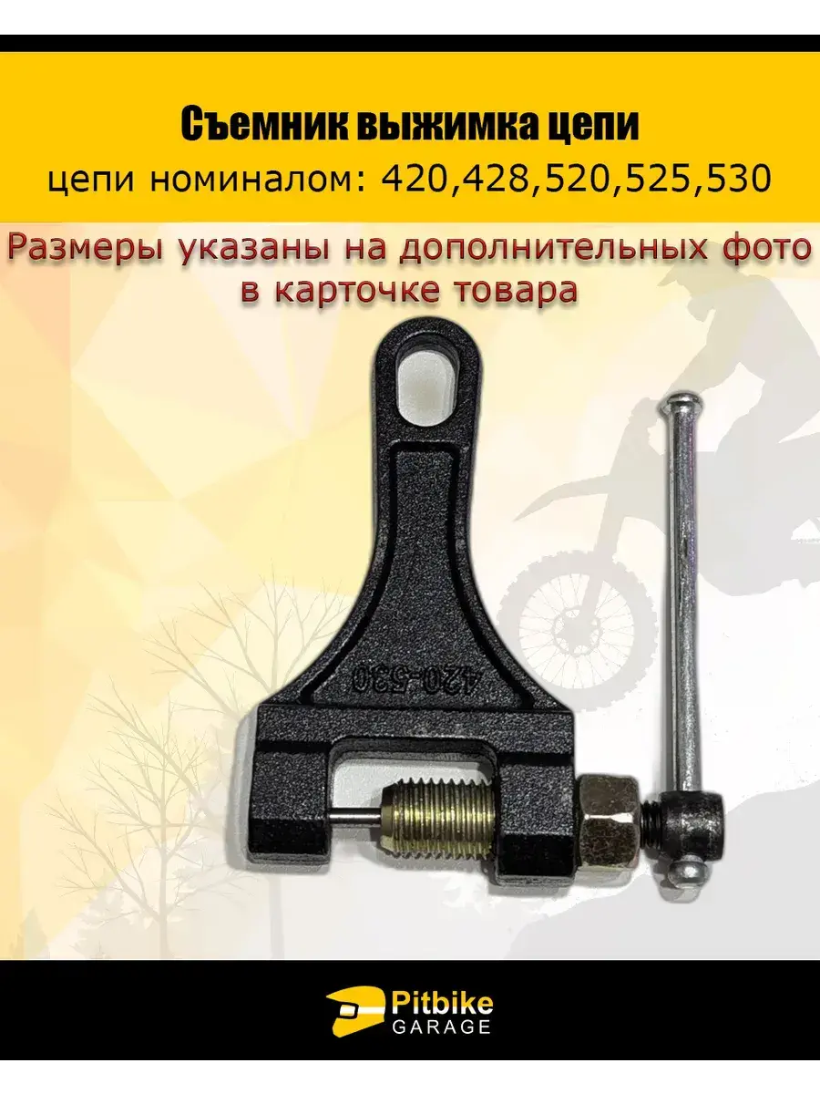 Благодаря использованию качественного чугунного материала, этот инструмент отличается высокой прочностью и длительным сроком службы, гарантируя безотказное выполнение своих функций при каждом использовании. Компактные размеры и эргономичная конструкция делают работу со съемником комфортной даже в условиях ограниченного пространства мастерской.Съемник выжимка цепи (420-530) представляет собой важную запчасть для мотоциклов, предназначенную для удобства и безопасности процесса смены цепи на мотоцикле. Этот съемник адаптирован под ширину цепей от 420 до 530 мм, что делает его универсальным решением для широкого спектра моделей мотоциклов. Использование съемника выжимка цепи значительно упрощает процесс замены цепи, позволяя легко отсоединить старую цепь и установить новую без необходимости использования специальных инструментов. Это не только экономит время, но и снижает вероятность повреждения цепи или мотоцикла в процессе её замены. Съемник выжимка цепи изготовлен из высококачественных материалов, обеспечивающих его долговечность и надежность. Он легко устанавливается на место и не требует специальных навыков для его использования. Этот съемник является отличным выбором для владельцев мотоциклов, стремящихся к упрощению технического обслуживания своего транспортного средства и желающих обеспечить его безопасную и эффективную эксплуатацию.