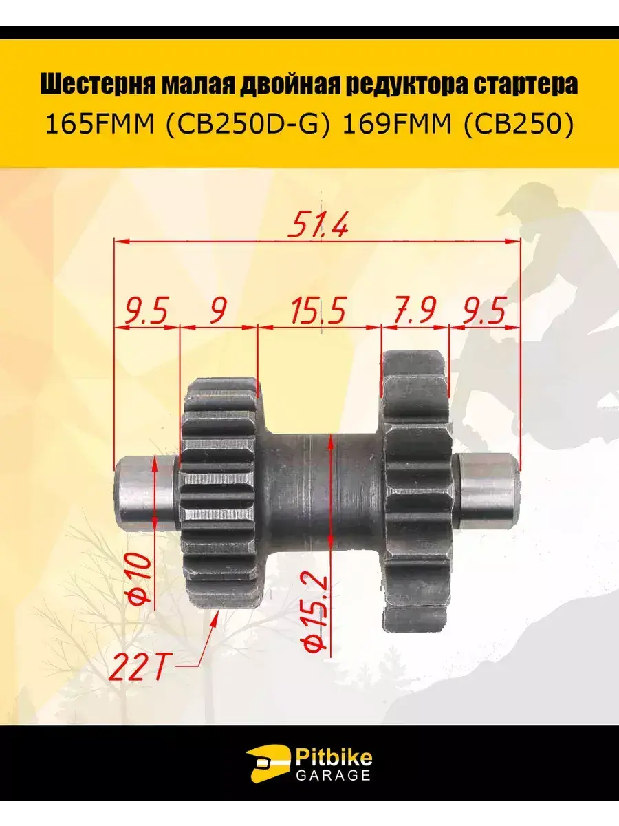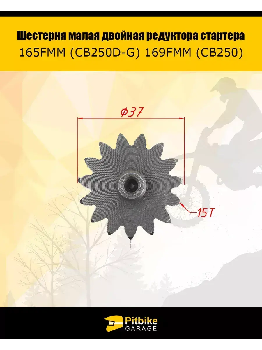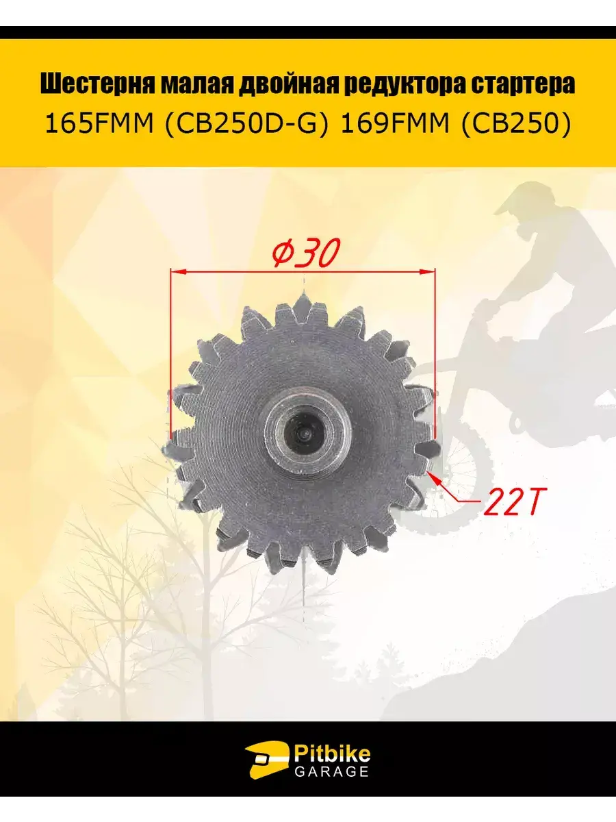 Шестерня малая двойная редуктора стартера 165FMM (CB250D-G) 169FMM (CB250) 1 штука