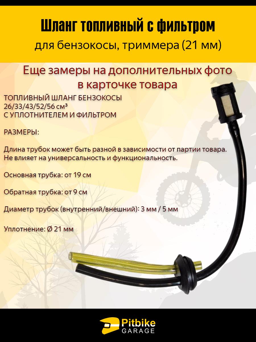 Комплект топливных шлангов с фильтром и уплотнением под отверстие бака 21 мм для триммеров и мотокос