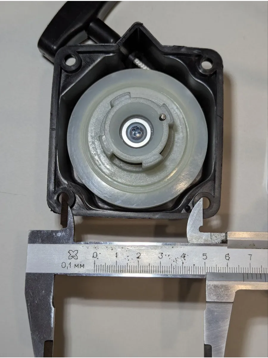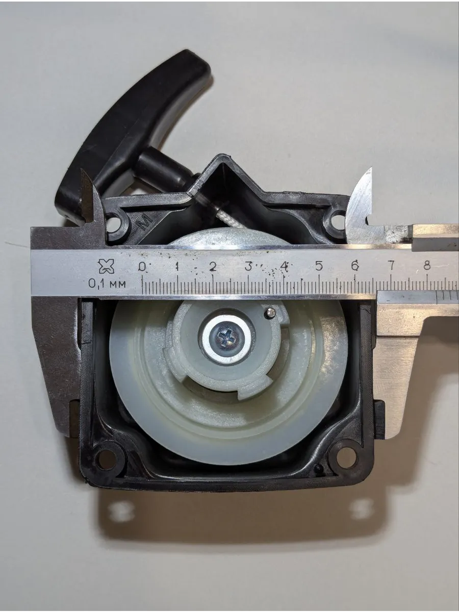 Стартер для триммера 33/43/52 см³ — ручной, лёгкий старт, 4 зацепа, универсальный, подходит для бензокос, мотокос, мотобуров, размер корпуса 82×82 мм, диаметр зацепов 37 мм