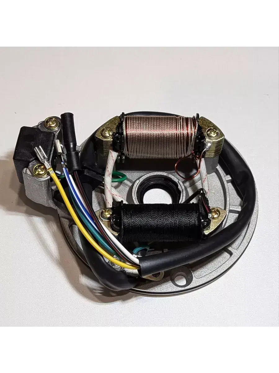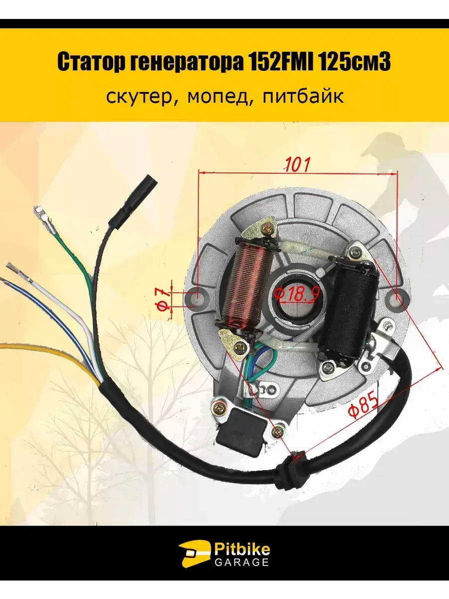 Статор генератора 152FMI для двигателя 125см³ (2 катушки/двиг. без стартера) – надежное питание вашего мототехники! Идеальная совместимость – статор генератора 152FMI разработан специально для двигателей 125см³ (4-тактных), обеспечивая стабильную зарядку аккумулятора и бесперебойную работу электросистемы. Высокое качество и долговечность – изготовлен из медной проволоки высокого класса и прочного ламинационного сердечника, что гарантирует долгий срок службы даже при интенсивных нагрузках. Быстрая установка – точная геометрия и совместимость с оригинальными моделями позволяют легко заменить старый статор без доработок. Преимущества нашего статора: - Подходит для скутеров, питбайков, квадроциклов с двигателем 152FMI 125см³ - Обеспечивает стабильное напряжение в электросети - Повышенная износостойкость и защита от перегрева - Оптимальное соотношение цена/качество Почему стоит купить? - Восстанавливает работу генератора при поломке заводского статора - Предотвращает разряд аккумулятора и проблемы с зажиганием - Гарантирует бесперебойную работу фар, датчиков и электроники Закажите прямо сейчас – обеспечьте свою технику надежным источником энергии!