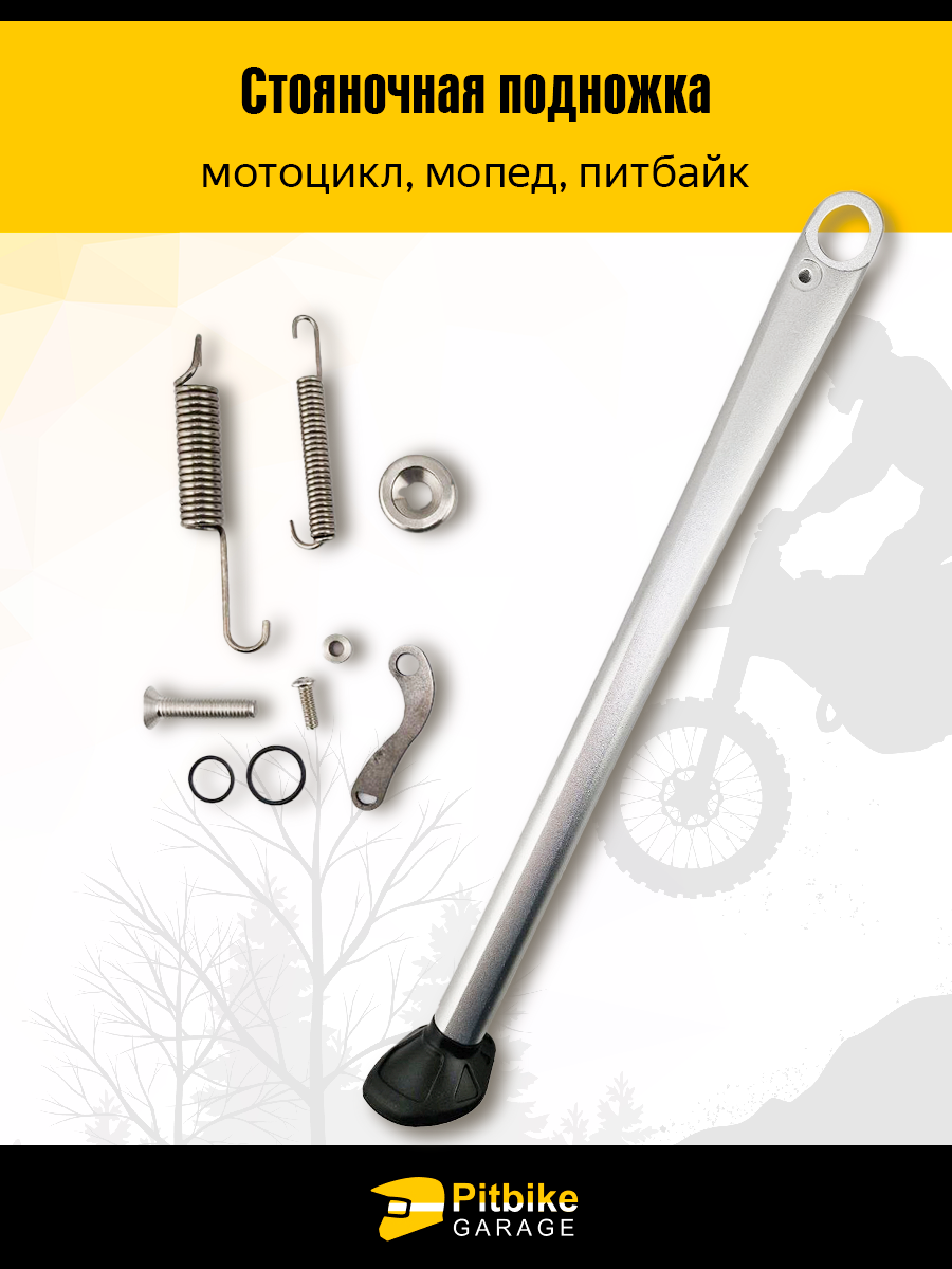 Высокое качество материалов – прочный алюминиевый сплав с защитным анодированием. Комплектность – в набор входят: подножка, две пружины, болты, шайбы, уплотнительные кольца и крепежная пластина.
