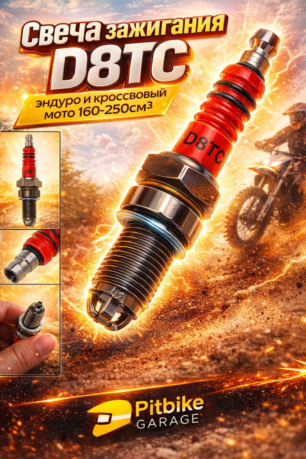 Свеча зажигания D8TC — надежный и проверенный компонент для эндуро и кроссовых мотоциклов с объемом двигателя 160–250 см³. Данная модель широко применяется в одноцилиндровых 4-тактных моторах и зарекомендовала себя как стабильное решение для повседневной эксплуатации, тренировок и активной езды по бездорожью.
