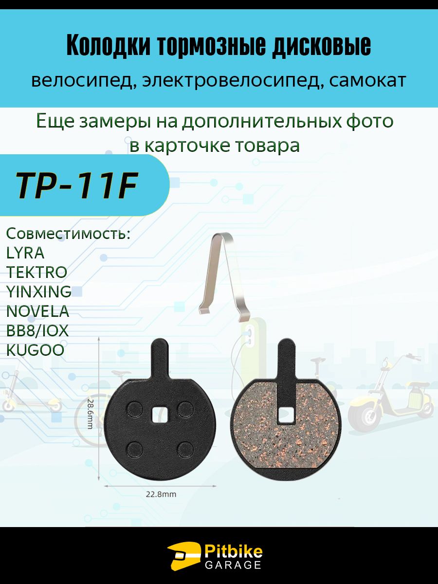 Совместимость: TP-11F подходит для Shimano B01S/B03S/B05S, TEKTRO Auriga и Draco, а также для моделей от LYRA, YINXING, NOVELA, BB8/IOX, KUGOO и других. Универсальный формат — удобно и выгодно!