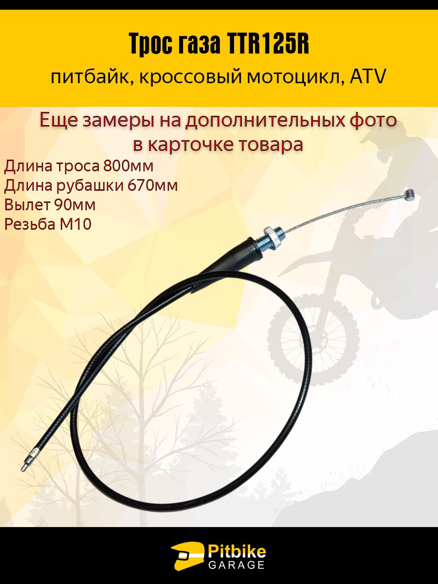 - Трос газа для мотоцикла, питбайка, мопеда TTR125, L650 мм — мотозапчасть или аксессуар для мотоцикла. Используется для ремонта, замены и регулярного обслуживания. Обеспечивает стабильную работу и длительный срок службы. Трос газа TTR125R — управляй мощностью точно и безопасно