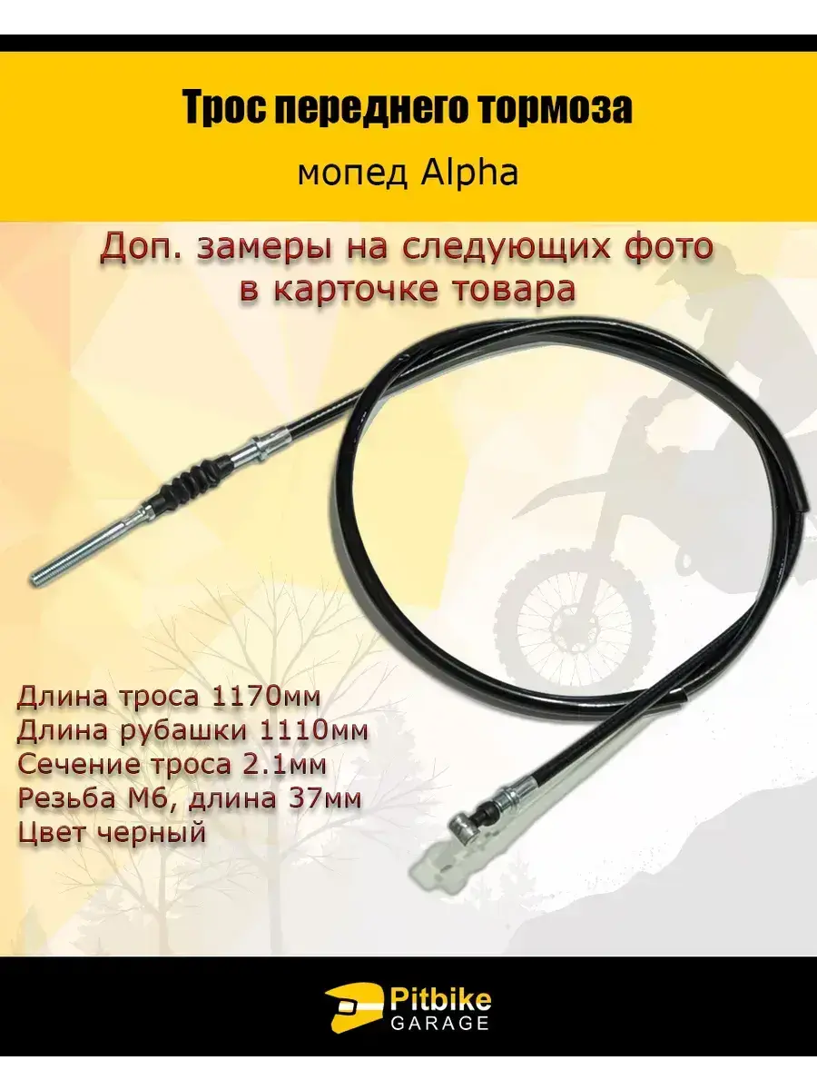 Трос переднего тормоза для мопеда Alpha — надёжная и долговечная деталь, обеспечивающая безопасное и эффективное торможение. Изготовлен из прочных материалов (металл и резина), устойчивых к износу, перепадам температур и влаге. Подходит для замены штатного троса без необходимости доработок. Простая установка позволит самостоятельно заменить старый трос, сэкономив время и деньги на сервисе. Идеален для ежедневной эксплуатации, длительных поездок и восстановления тормозной системы. Преимущества: Совместимость с мопедом Alpha Прочная оплётка и надёжный сердечник Устойчивость к растяжению и коррозии Лёгкая замена своими силами Чёткий отклик тормозной системы Характеристики: Длина троса: 1170 мм Длина рубашки: 1110 мм Сечение троса: 2,1 мм Резьба: М6, длина 37 мм Цвет: чёрный Материал: металл, резина Совместимость: мопед Alpha Комплектация: трос тормоза — 1 шт. Производство: Китай