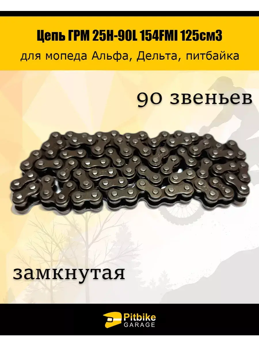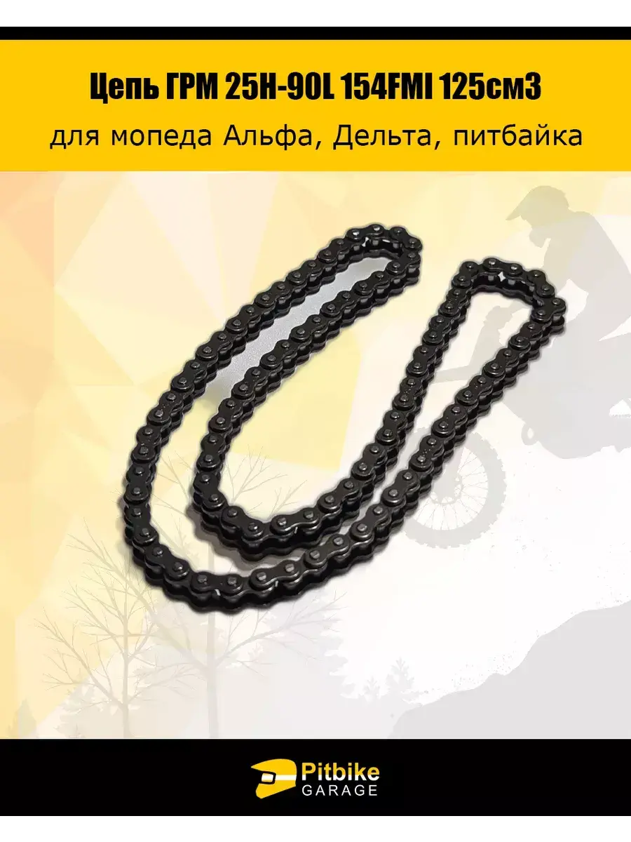 Данная цепь подходит на все двигатели YX125, YX140E ,YX140 и YX150-5 . Рекомендуем считать кол-во звеньев перед покупкой/заменой. Модель - 25H Длина цепи = 90 звеньев. Рекомендуем считать кол-во звеньев перед покупкой/заменой. (в 99% 125сс моторы имеют 90 звеньев - редко 84) Цепь ГРМ от моторов 153FMI, 154FMI. Модель - 25H. Длина цепи = 90 звеньев. Подходит на большинство двигателей 125сс. Рекомендуем считать кол-во звеньев передпокупкой/заменой. Цепь ГРМ 25Н-90L 154FMI 125см3 представляет собой высококачественную запчасть для мотоциклов, предназначенную для обеспечения надежной работы системы ГРМ (генератор-регулятор-магнито). Эта цепь выполнена из прочных материалов, что обеспечивает её долговечность и надежность в эксплуатации. Она подходит для установки на модели мотоциклов, требующих использования цепей с данными параметрами. Цепь ГРМ 25Н-90L 154FMI 125см3 отличается высокой точностью изготовления, что гарантирует её правильную работу в системе ГРМ, обеспечивая стабильное питание электросистемы мотоцикла. Применение этой цепи позволяет улучшить общее состояние мотоцикла, продлить срок его службы и избежать непредвиденных сбоев в работе.