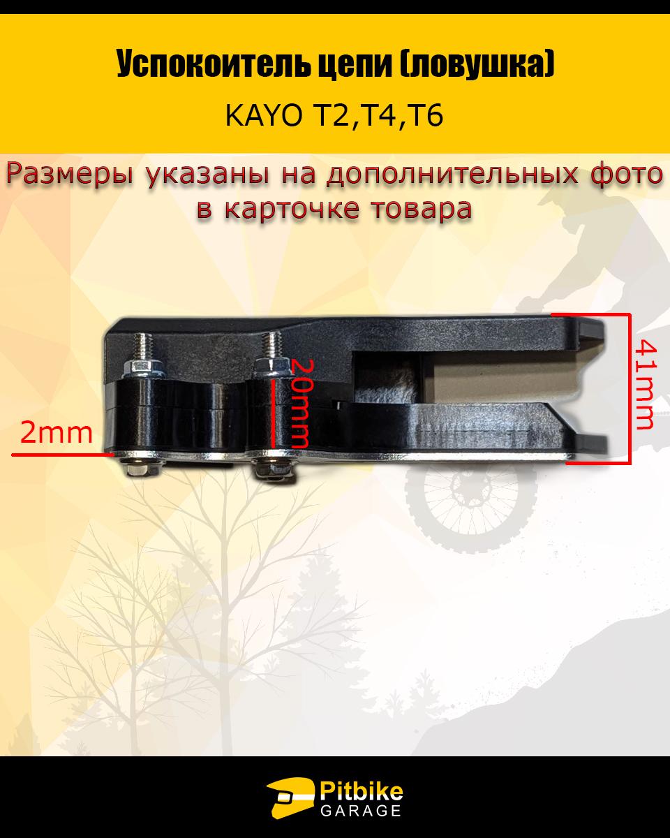 Успокоитель цепи для мотоциклов KAYO T2, T4, T6 и аналогичных моделей эндуро и питбайков – надежная деталь, необходимая для защиты трансмиссии и продления срока службы цепи. Эта ловушка предотвращает повреждения цепи и звезды, исключает соскакивание и защищает от попадания посторонних предметов во время движения по бездорожью. Изделие изготовлено из прочного пластика с металлическими элементами, что обеспечивает долговечность и устойчивость к износу.